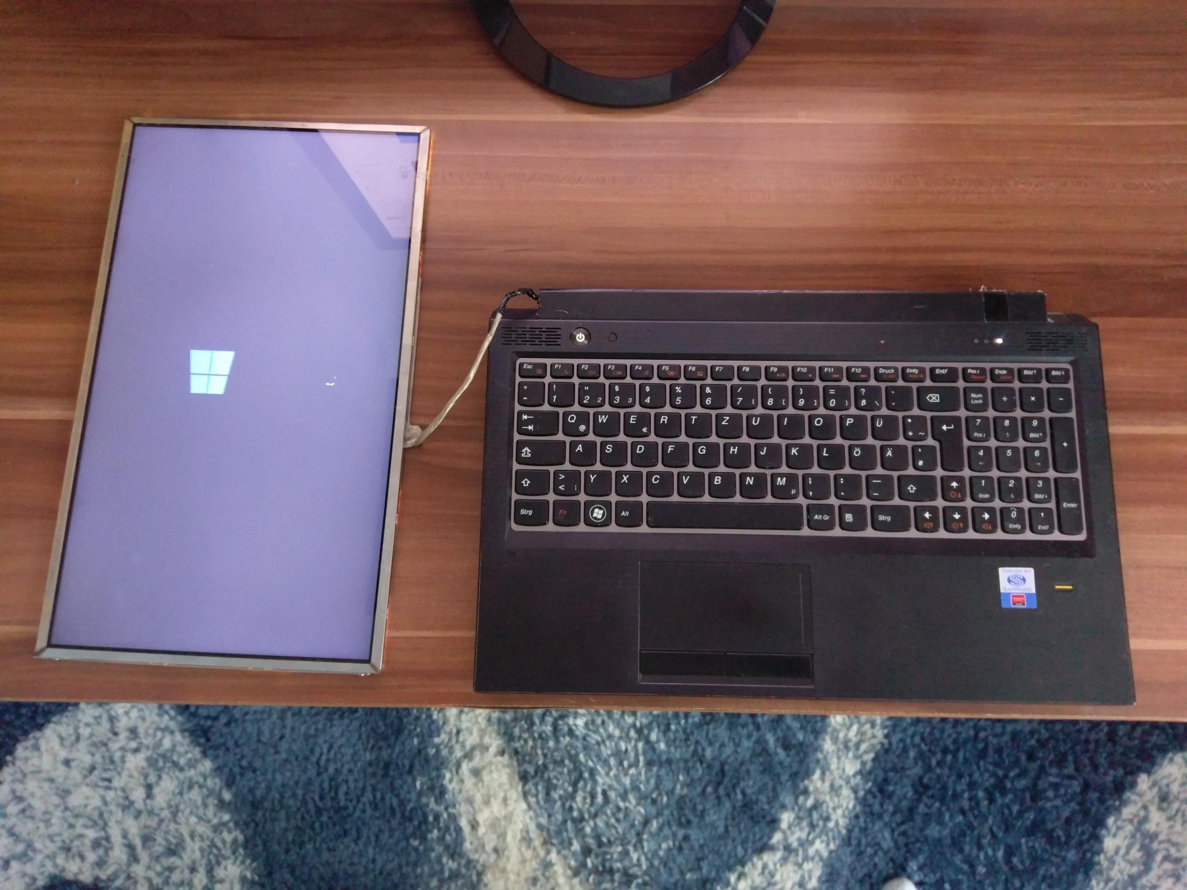 -Mein Lenovo B570 Laptop ist leider bei einem Sturz verunglückt und beide Scharnieren sind vollständig abgerissen. Die Bildschirmaverkleidung ist leider auch ziemlich verunglückt und wurde vollständig entfernt.