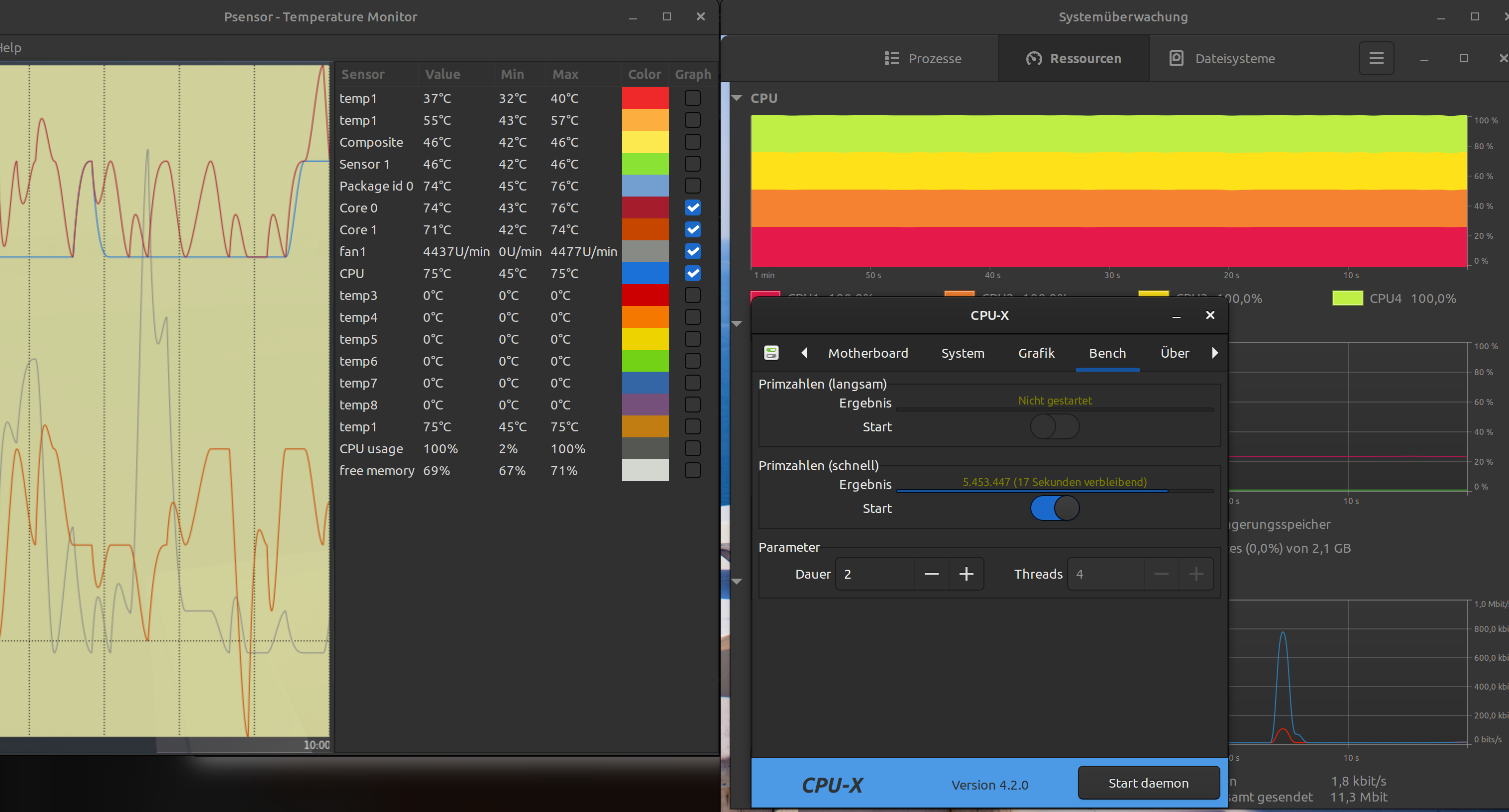 Ich habe noch einen Aluminium Kühlblock liegen, Maße 80x70x19mm, der Stockkühler aus einem alten Deskmini. Der massive Block in der Mitte ist 30x30mm und hat damit ein wenig Spiel, um CPU und iGPU abzudecken (25x11mm zusammen). Der Prozessor ist ein i5-1135G7 mit einer Intel Iris Xe Graphics iGPU, 12-28W cTDP. Das gilt es zu kühlen, wobei der Rechner für Office / YouTube / Internet genutzt werden wird.