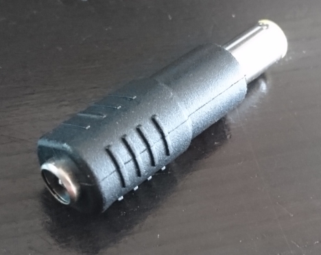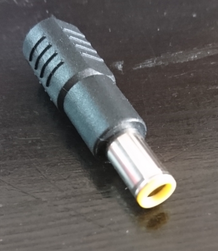 Gibt's solche Stecker zum Aufdrehen als Hohlstecker? Ich hätte sogar einen Adapter von meinen Desktop-PC-Netzteil (externes 19V Netzteil) mit Standard 5,5mm Hochsteckerbuchse (siehe Fotos). Oder hat jemand eine andere gute Idee, wie man das halbwegs vernünftig lösen könnte? Vorallem das Löten des äußeren Leiters (vermutlich Masse) war bisher eher "unschön".