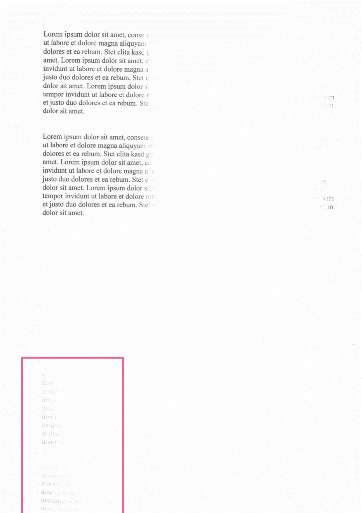 Laserdrucker - Text erscheint schemenhaft am Blattende
