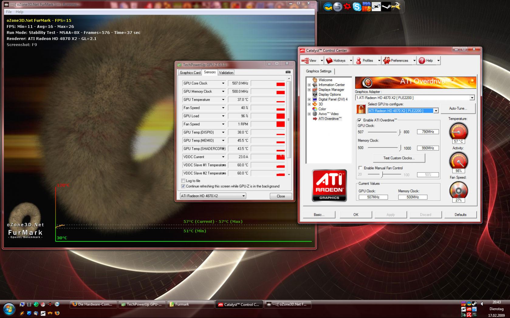 Die Grafikkarte taktete sich beim Furmark-Test nicht hoch - trotz exe-renaming und dergleichen.