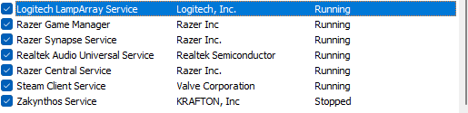 * Battleeye, Easy-Anticheat, FACEIT, Logitech, sämtlicher Razorkram, Zakynthos (wtf ist das^^) - das gehört alles nicht zu einem cleanen Standard-Windows.