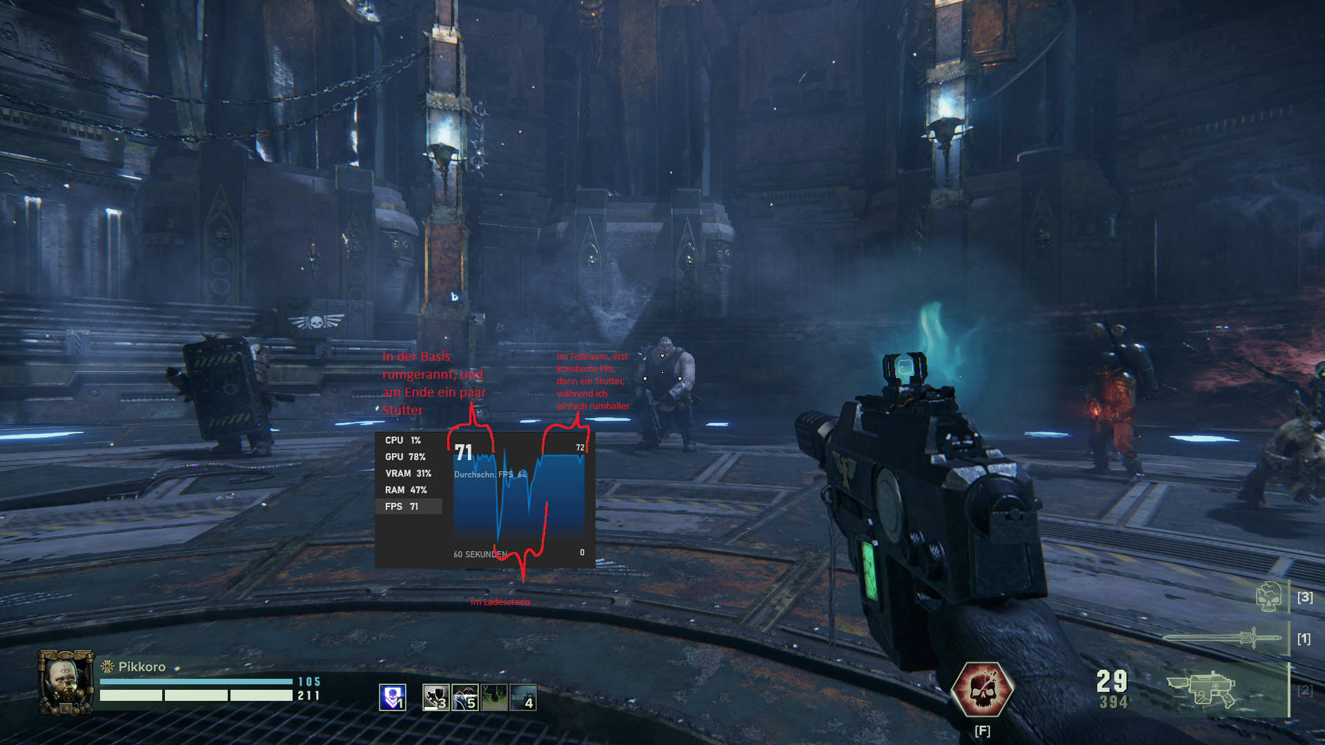 Hallo, ich versuche das Problem schon länger zu lösen. Ich habe seit 2 Jahren einen recht guten PC, aber keine neue Grafikkarte gekauft, daher hatte ich Performance Probleme immer darauf geschoben, jetzt aber mit neuer Grafikkarte sind sie immer noch da. Auch erinner ich mich, dass ich schon stutter damals mit dem alten PC hatte bei Diablo 3. Die einzige Hardware, die immer gleich war, war die Soundkarte und die Boxen, die habe ich jetzt aber mal abgeklemmt und deinstalliert. Das war es nun aber auch nicht. Da ich schon extrem viel ausprobiert habe, wollte ich mich jetzt doch mal an ein Forum wenden.