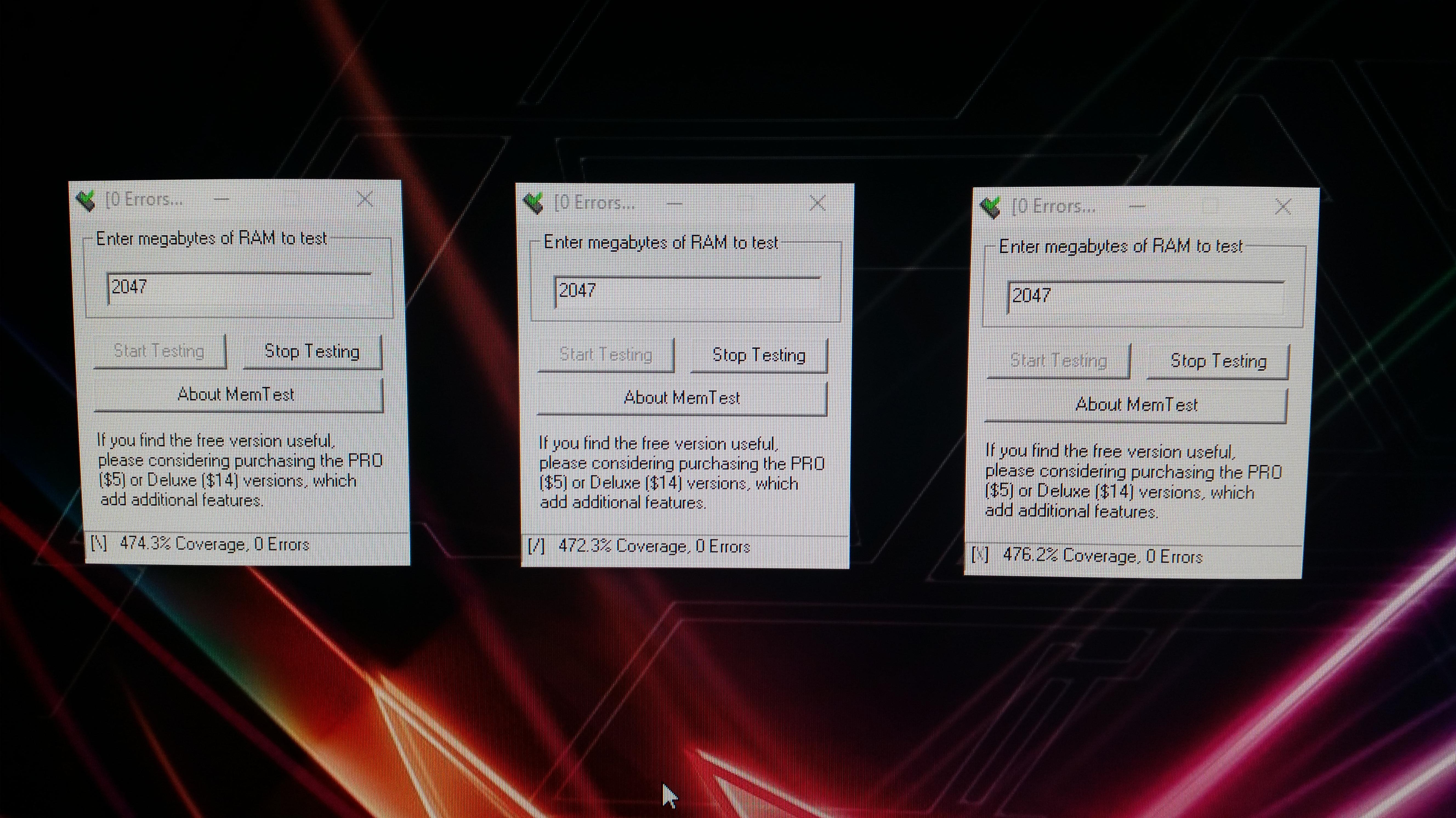 Ich glaube ich habe da einen fehler gemacht oder bzw nicht genutzer RAM wurde mir 6.5GB angegeben. Darauf hin habe ich 3 mal den test laufen lassen mit jeweils 2GB. Dies ist doch richtig oder ?