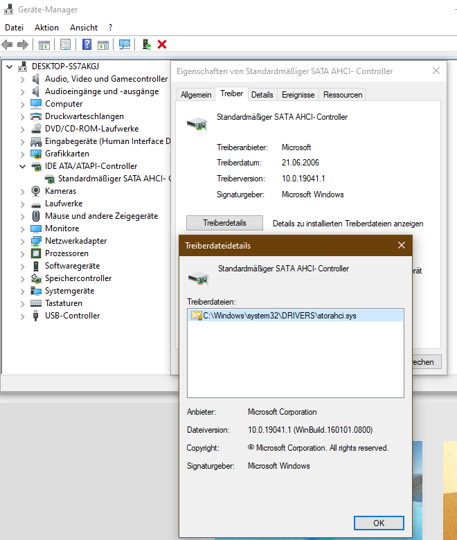 Neueste Triber für das Mainboard sind installiert (Mainboard und CPU sind nagelneu). Windows 10 ist auf einer Samsung SSD 850 PRO installiert.