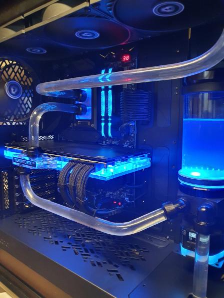 Je nachdem welchen Kühler du genau für deine GTX 3080 hast, kann man auch ber der Aurora die angedachte Flussrichtung recht gut erkennen: