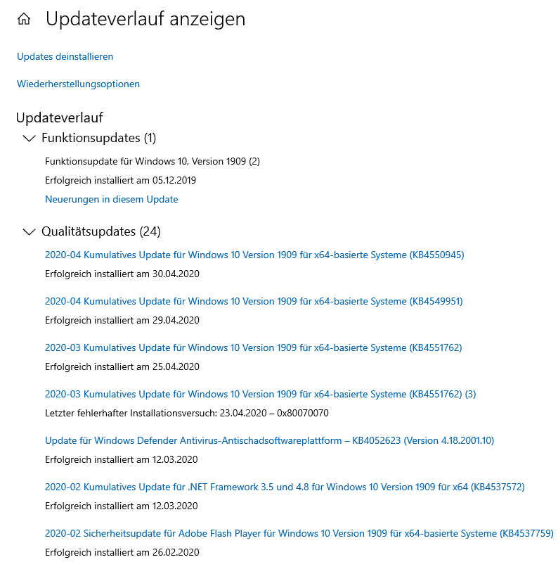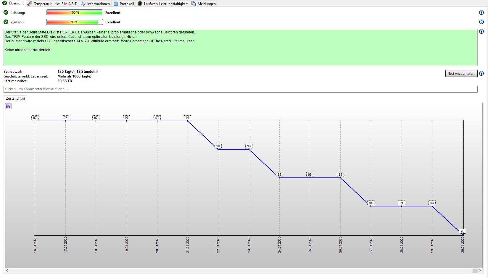 PS: Die zwei angehängten Bilder zeigen die Smart-Werte der SSD und den Windows-Update Verlauf.