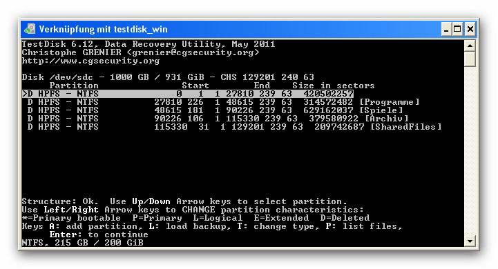 Nun bleibt mir nur noch die Hoffnung, daß mir hier jemand hilft das ganze mit Testdisk zu beheben.