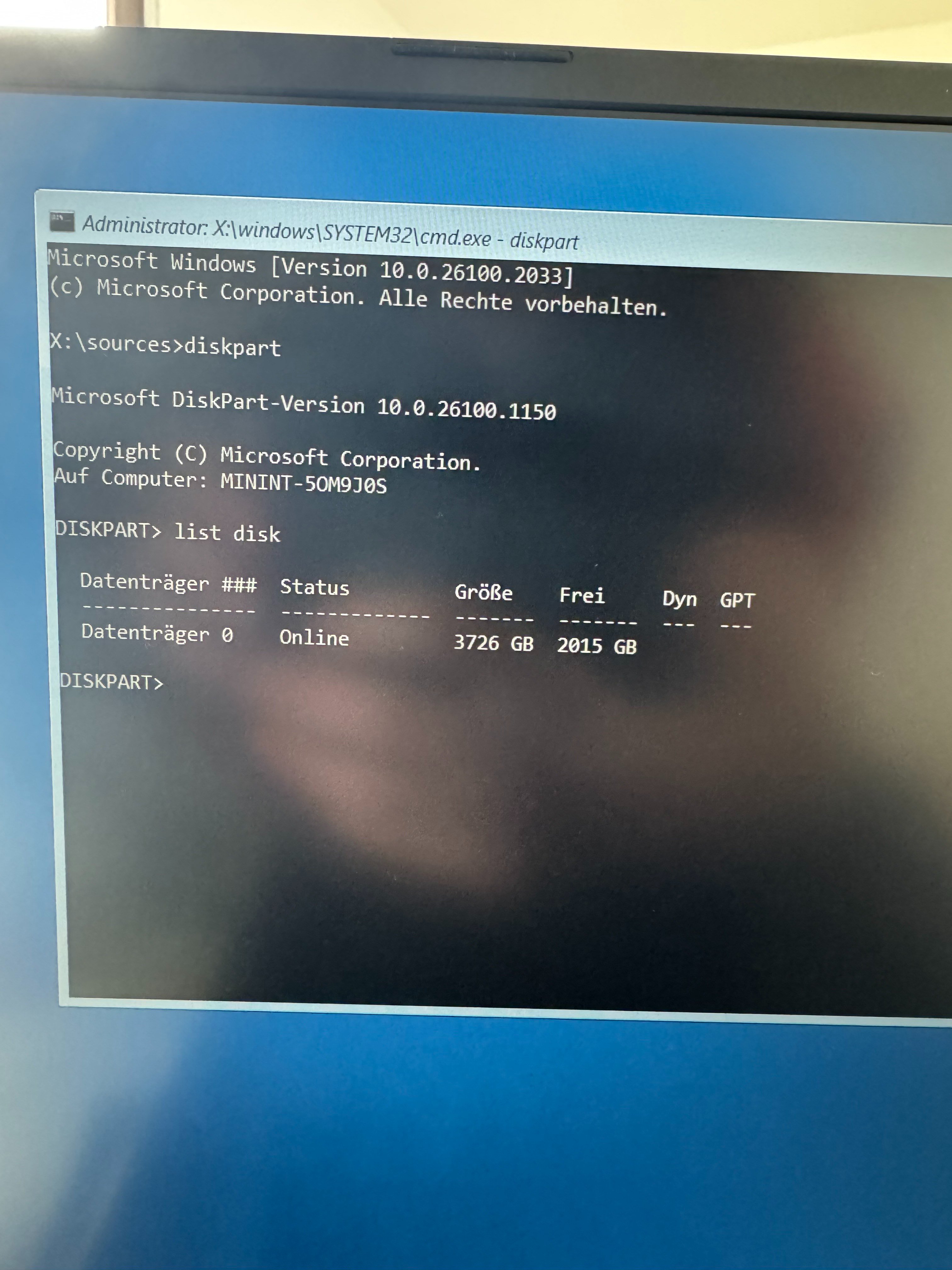 In Diskpart wird mir lediglich ein Datenträger 0 angezeigt, dieser hat auch den Gesamtspeicher von den beiden Laufwerken + meinem USB-Stick?