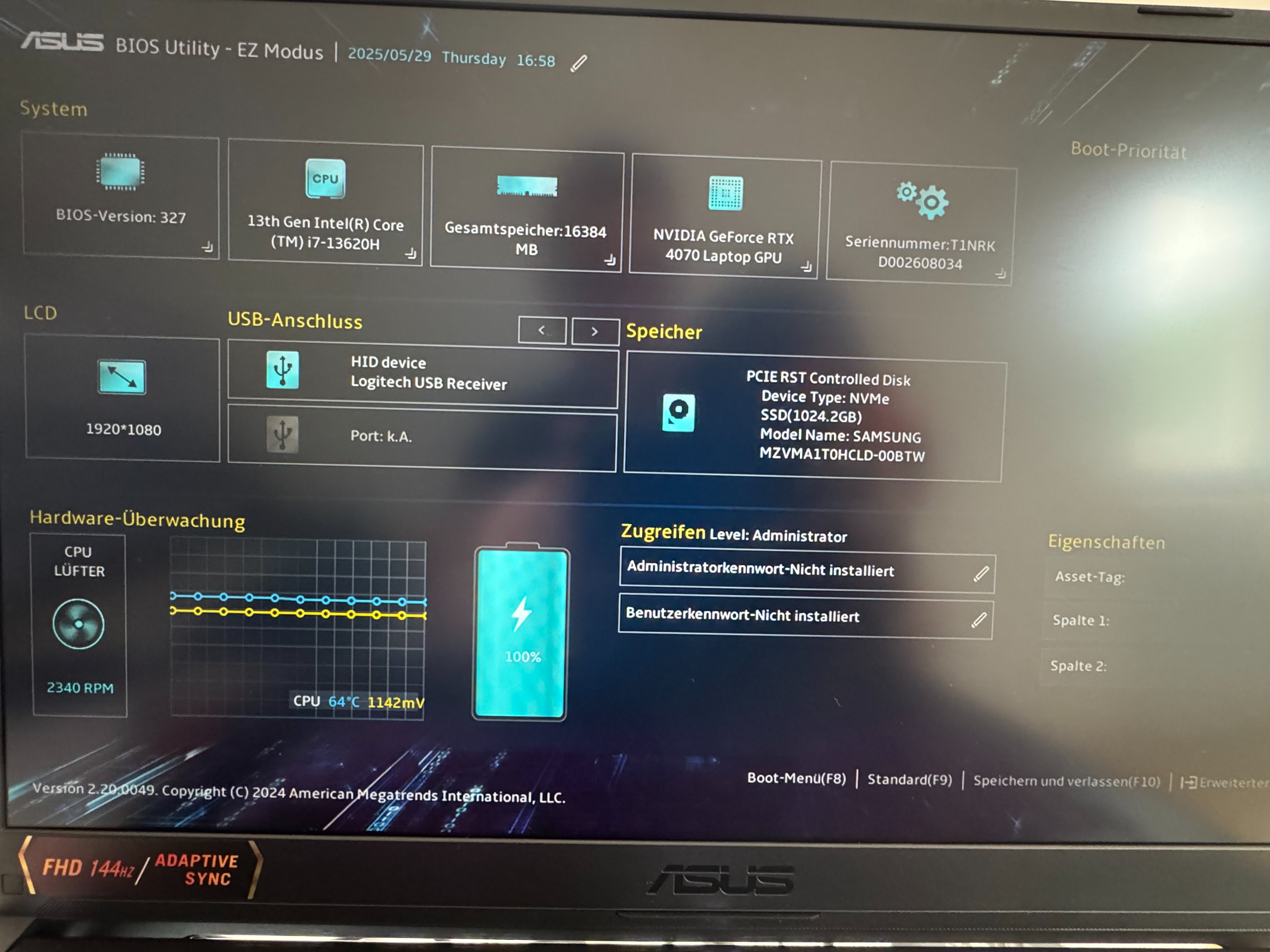 - Gehäuse: Asus TUF Gaming F17 Gaming Notebook