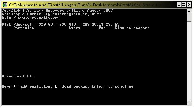 Wenn du dann mit y bestätigst, fängt Testdisk an zu kopieren.