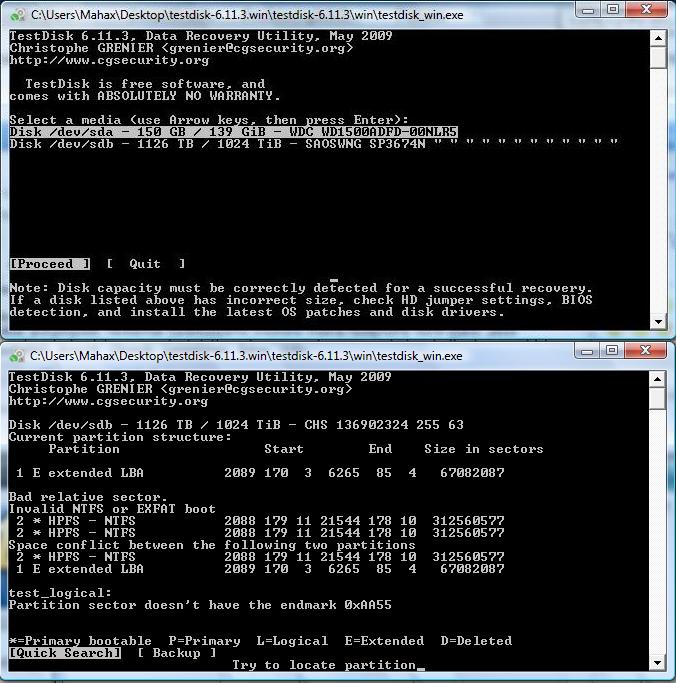 Führe mal eine Diagnose mit Testdisk wie folgt aus.