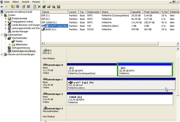 Wenn jetzt Partitionen (sie sollten jetzt u.U. grün dargestellt werden) gefunden werden, solltest Du sie wieder mit den Cursor Tasten auswählen und mittels