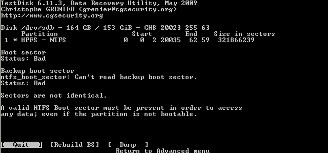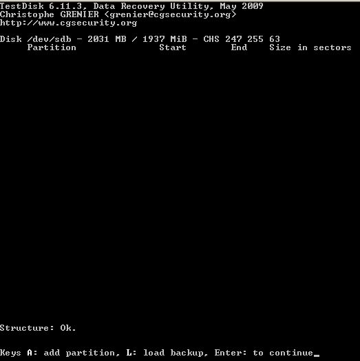 Führe mal eine Diagnose mit Testdisk wie folgt aus.