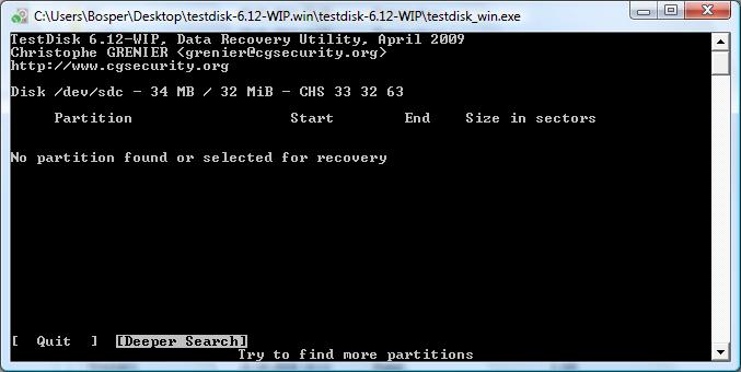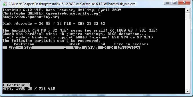 Wenn ich die C Platte auswähle kommt die Meldung: Partition: Read error