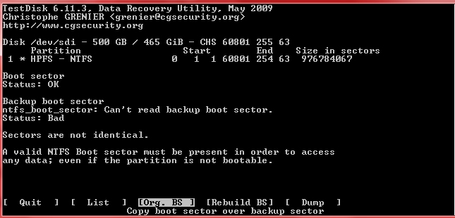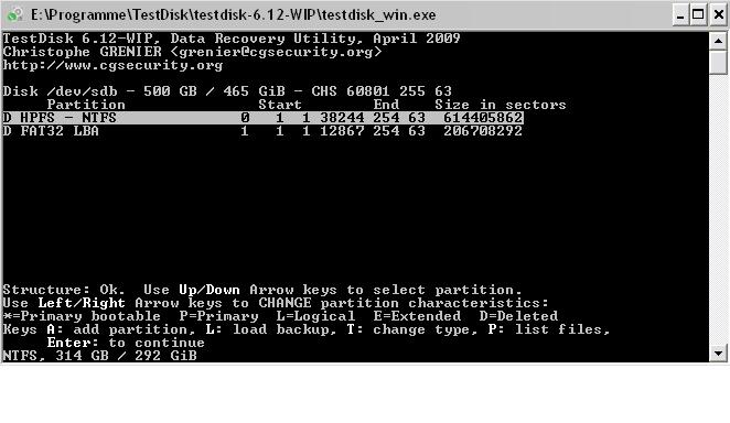 TestDisk zeigt mir jetzt an das alle 3 Partitionen OK sind wie auch identisch.