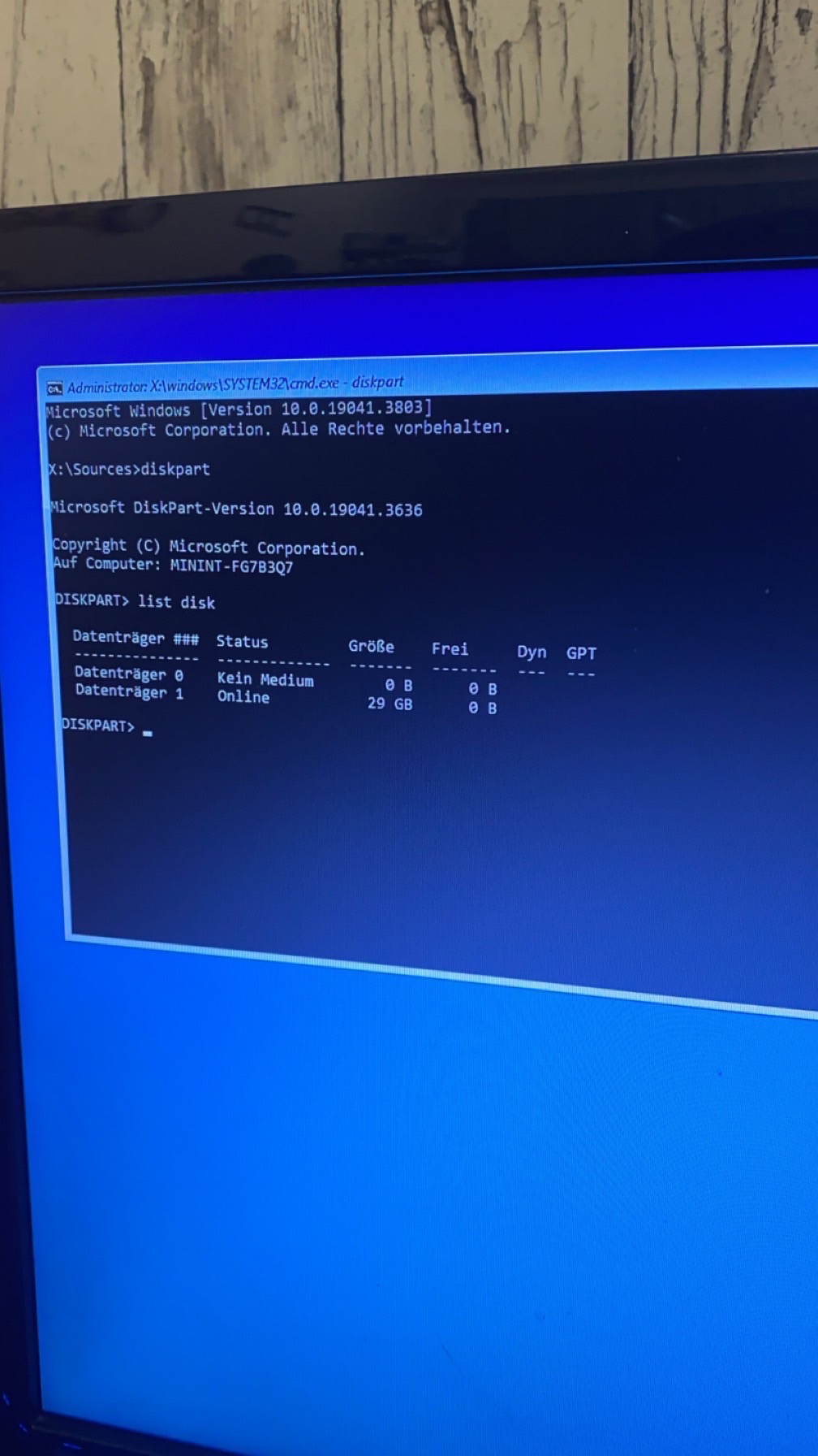 Bei der angezeigten Disk beim Bild handelt sich es um den USB stick mit dem microsoft Tool.