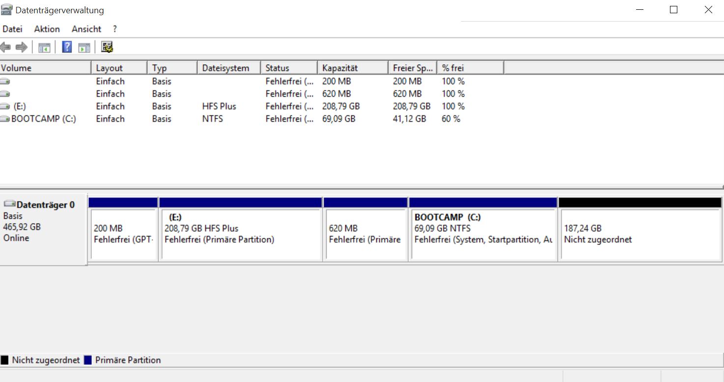 Wenn ich Windows 10 auf der Bootcamp Partition starte kann ich zwar auf die Mac Partition zugreifen, aber nicht auf die Datenpartition. Diese wird in der Datenträgerverwaltung von Win 10 sogar als nicht zugeordnet angezeigt und ich kann der Partition keinen Laufwerksbuchstaben zuweisen. Wenn ich mir die Festplatte im Paragon Festplatten Manager anschaue, dann kann ich die Datenpartition und die darauf befindlichen Daten wenigstens sehen, aber kann der Partition auch hier keinen Laufwerksbuchstaben zuweisen.