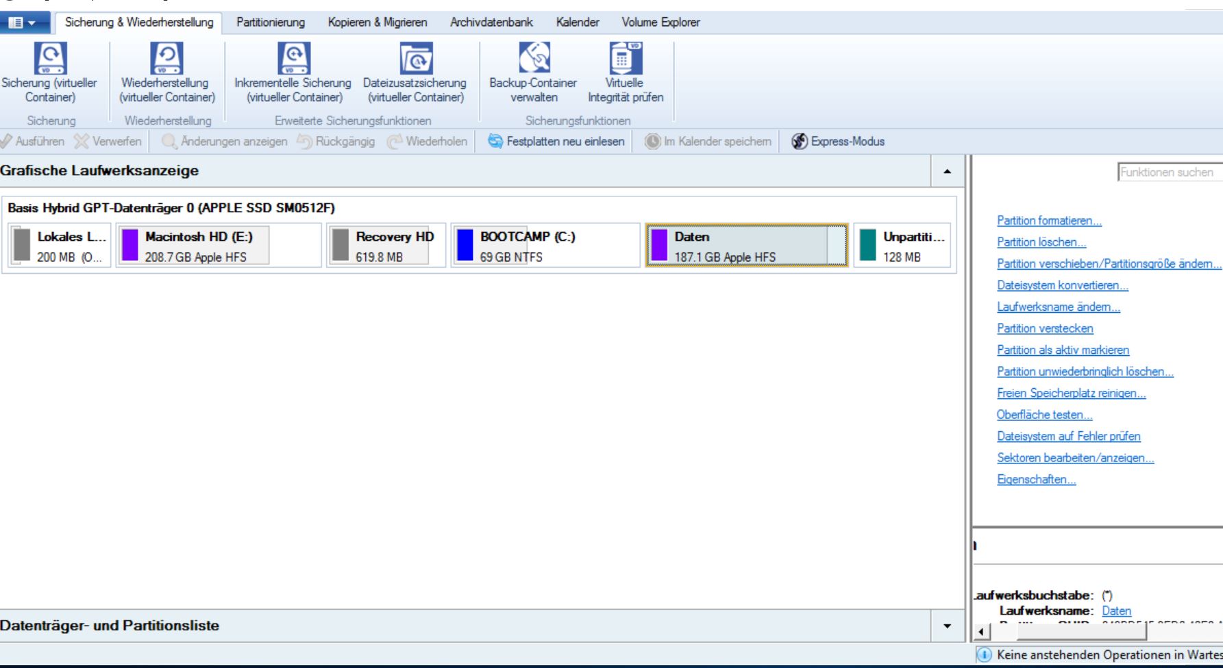 Ich habe insgesamt auf einer 512 GB Festplatte drei normale Partitionen. Mac Partition, Daten Partition und eine Win 10 Bootcamp Partition. Daneben gibt es noch zwei Systempartitionen, welche wohl automatisch angelegt wurden.