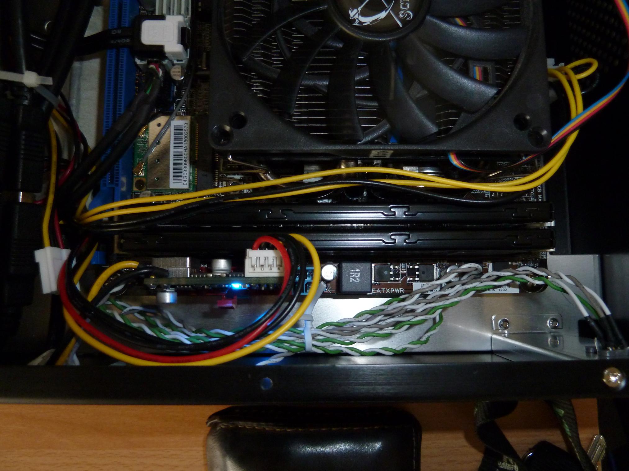 Das Gute ist, ich habe sowieso ein PicoPSU+Netzteil 80 Watt, welches ich benutzen kann. Somit habe ich das Standard 110W NT ausgebaut (nur 2 Schrauben los machen) und dann meins angeschlossen. Der schöne Nebeneffekt, man hat etwas mehr Platz.
