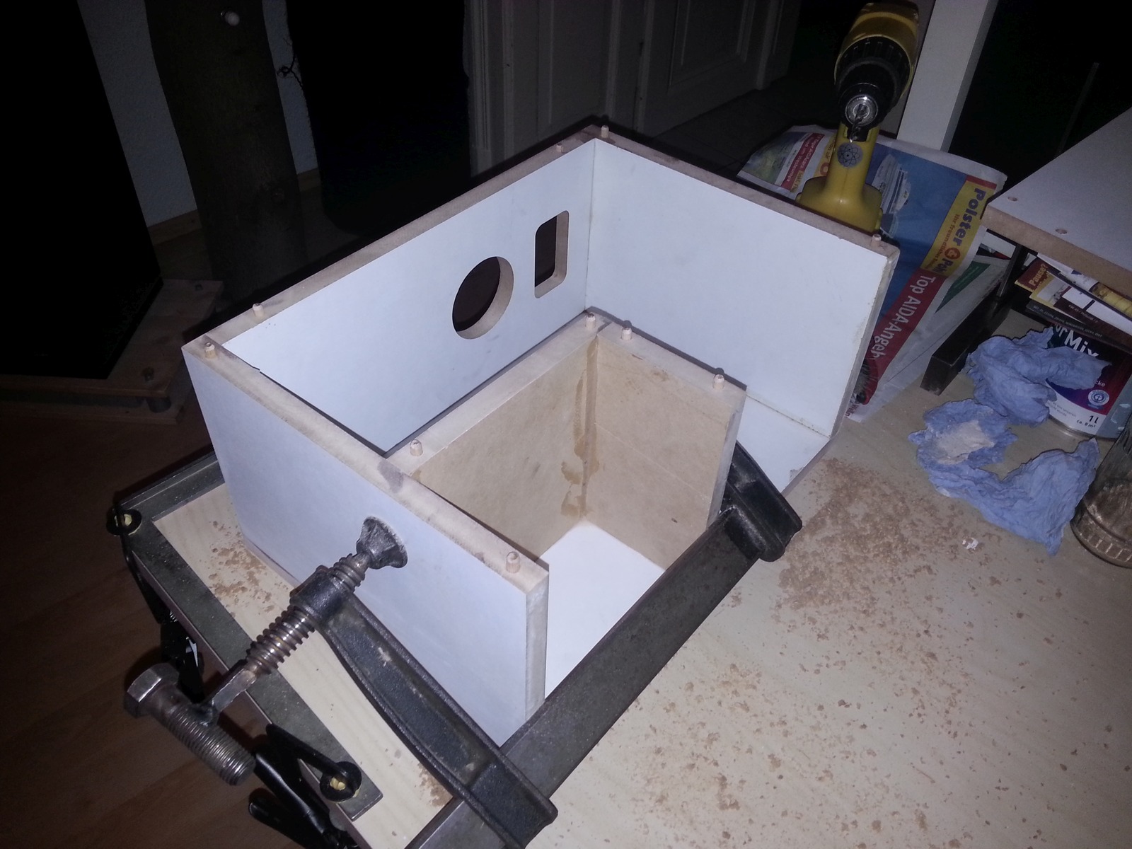 Gut, ich bin am 12. mit den Boxen fertig geworden, leider habe ich es mit dem Lackieren nicht mehr geschafft, denn mein Bruder wollte die gern zu seinem Geburtstag fertig haben. Hier ein paar Bilder.