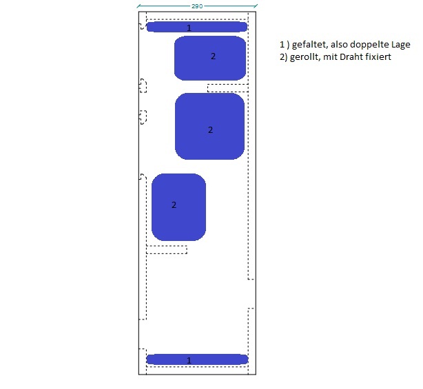 Ich habe das Sonofil immer als Meterware, und schneide das so zurecht, das wenn ich die Stücke zusammen rolle, das Volumen der Box locker gefüllt habe. Also nicht rein stopfen.