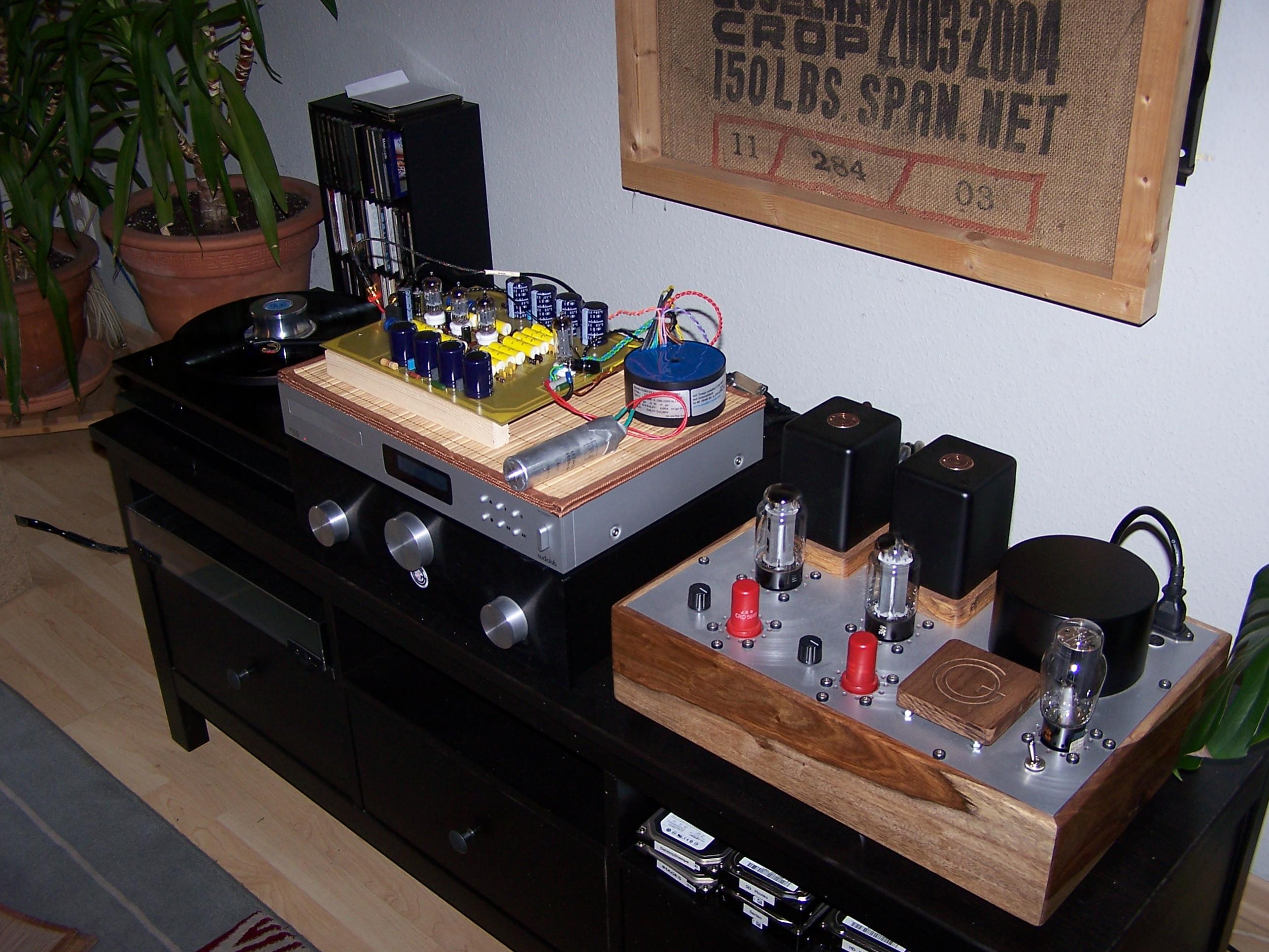 ), ist ein Eigenbau, bestehend aus einer 5cm Multiplexplatte und der Technik meines gut 20 Jahre alten Planar 2. Dem Tonarm wurde wegen eines Kabelbruchs eine durchgehende Verkabelung spendiert. Ich konnte jedoch in der Bucht einen neuwertigen Planar 3 ohne Tonarm schiessen, ist also nicht mehr aktuell. s. Bild 1 und 2. Wird aber irgenwann, wenn ich 'nen passenden Tonarm günstig bekomme, wieder aufgebaut.