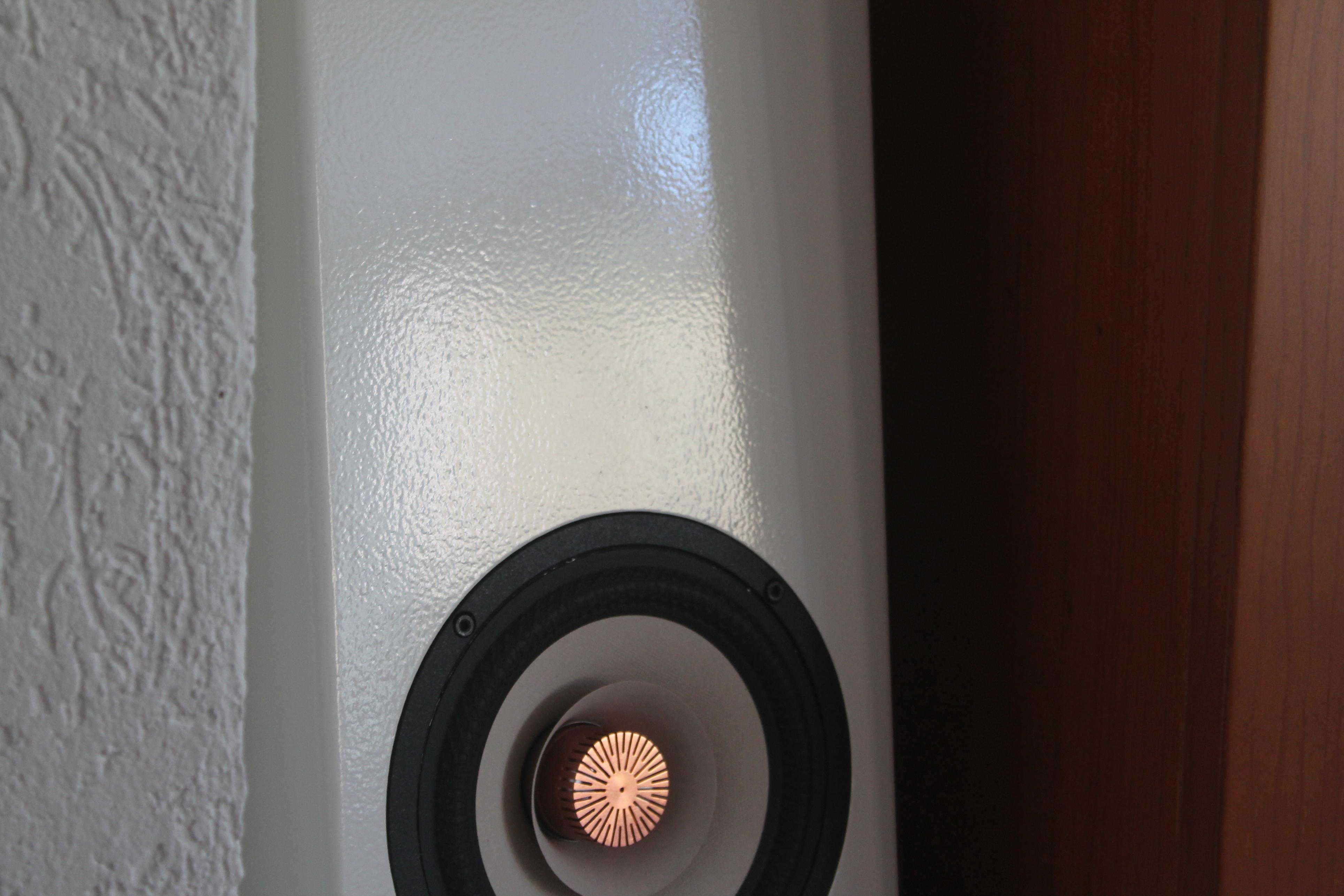 Es ist mir klar, daß die Aufstellung der Boxen suboptimal ist. Gerade die vom Betrachter linke Box wirkt sehr in die Ecke gequetscht. Aber leider läßt es sich nicht anders machen.