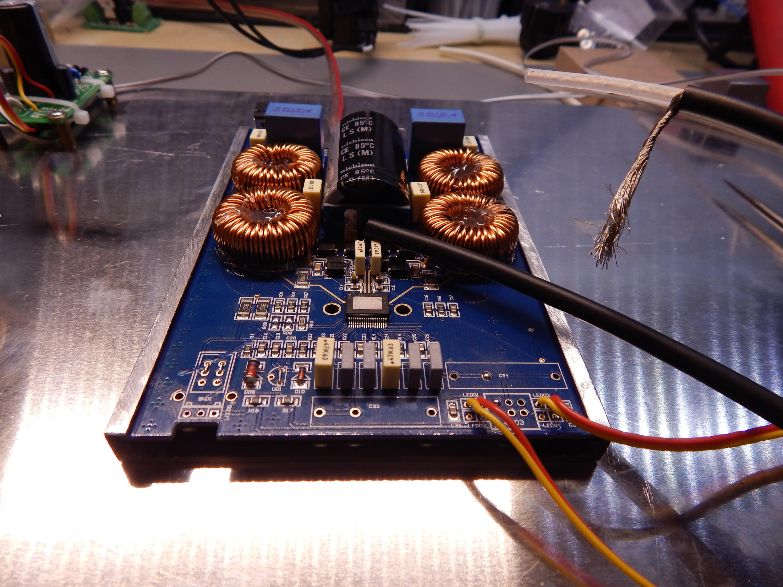 Am Donnerstag ist mit der Post ein Haufen kleiner Class D Verstärker angekommen, die ich auf Tauglichkeit zur Verwendung in kleinen Aktiv-Boxen testen will. Darunter auch eine kleine 100W Subwooferendstufe auf Basis des TDA8920. http://www.amazon.de/gp/product/B00HJKT366?psc=1&redirect=true&ref_=oh_aui_detailpage_o03_s00