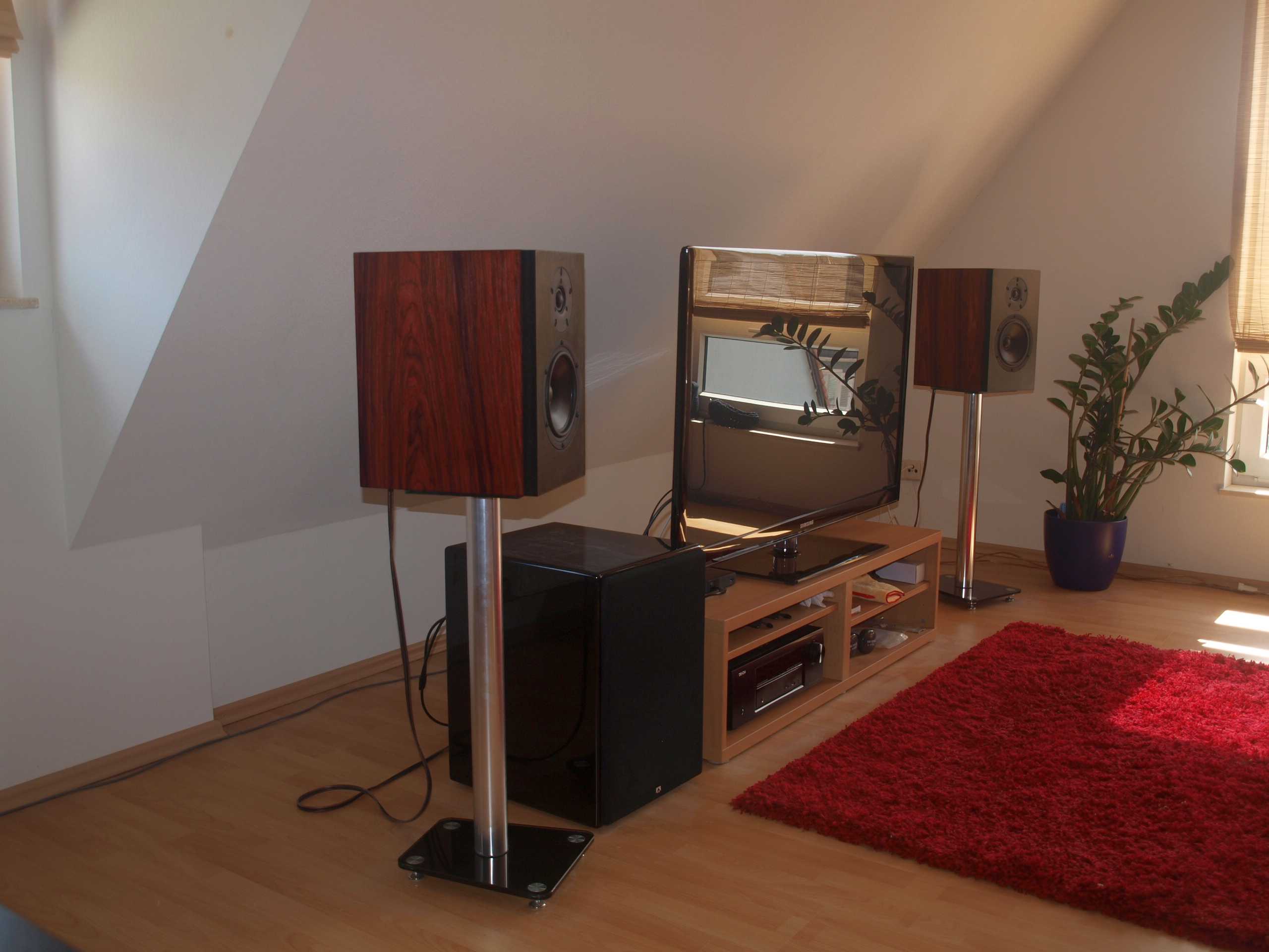 Wobei ich mit den SM6 eigentlich total zufrieden bin, hab inzwischen das Wohnzimmer etwas umgestellt, jetzt hab ich zu allen Wänden etwas über einen Meter Abstand, das hat doch noch einiges gebracht.
