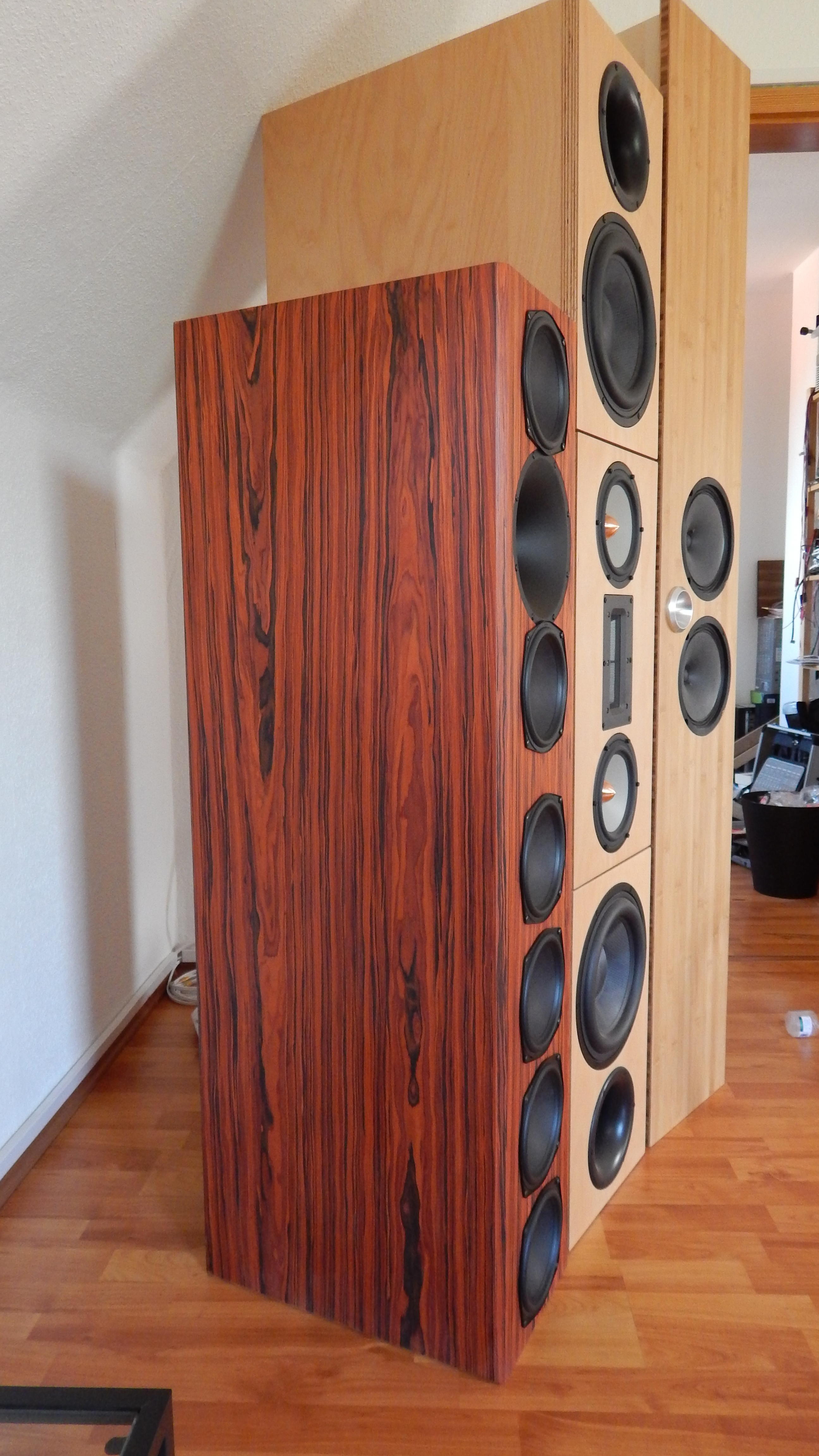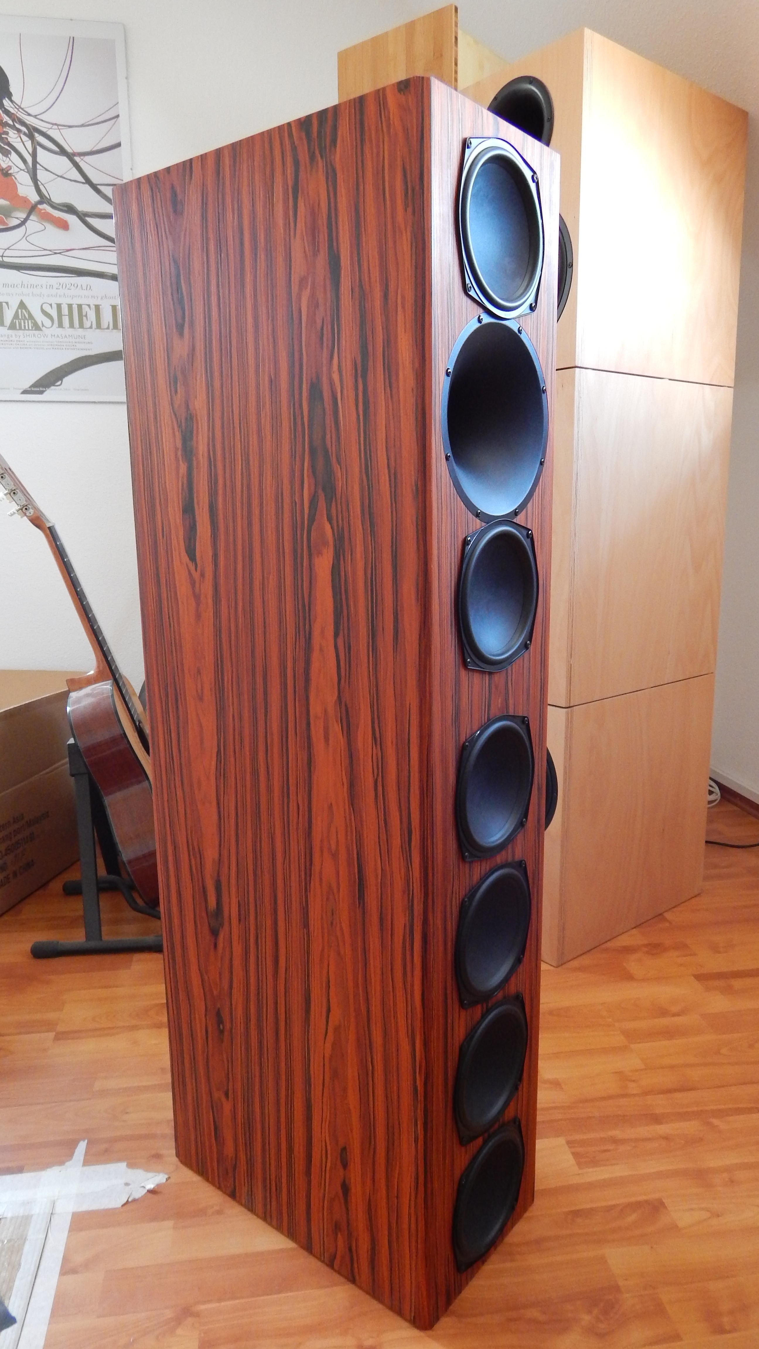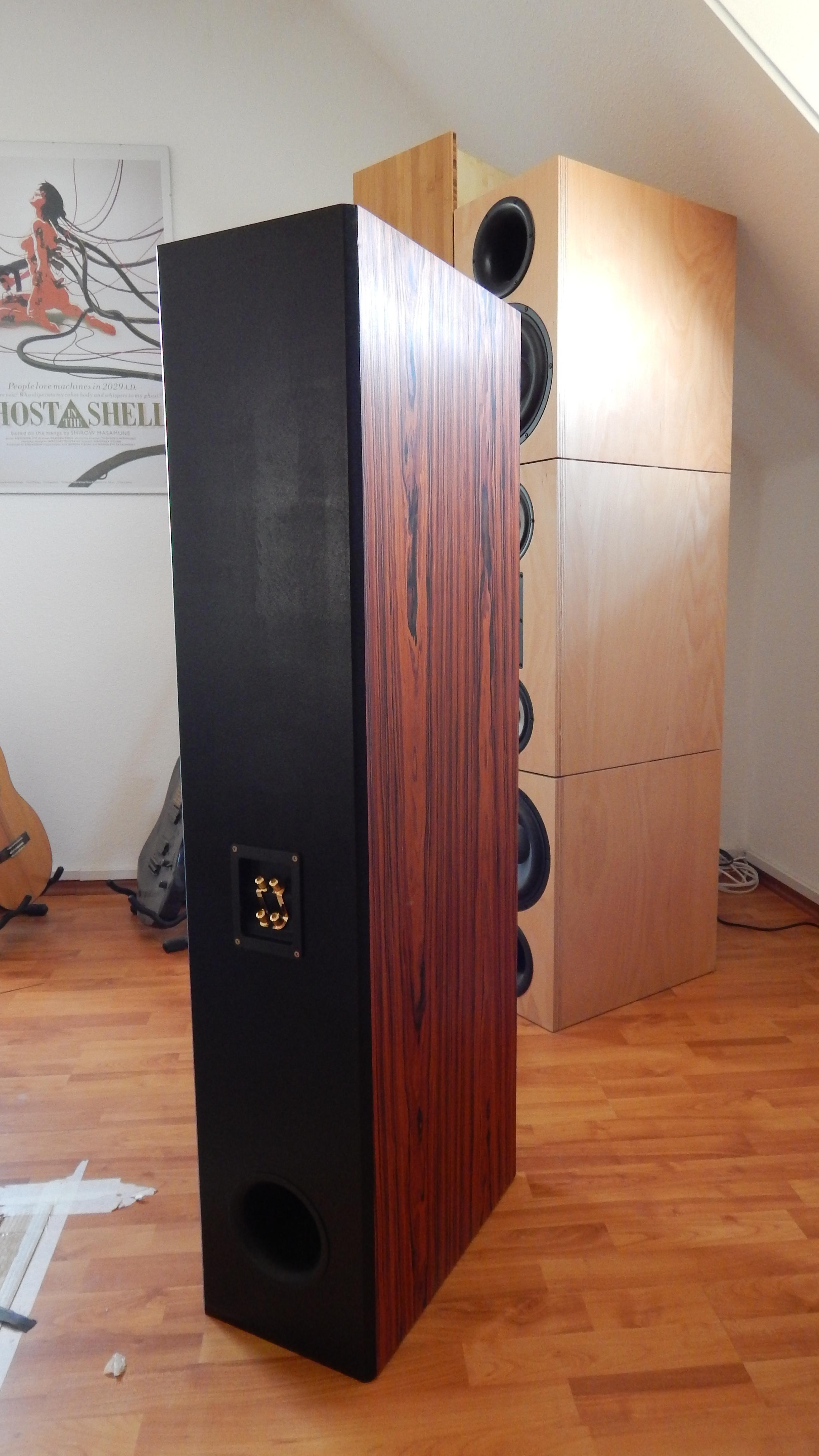Das ist mein Erstlingswerk, ein Paar SAK 161 auch in Santos Palisander aber rötlich gebezeit um meinem Lieblingsfurnier Cocobolo nachzueifern.
