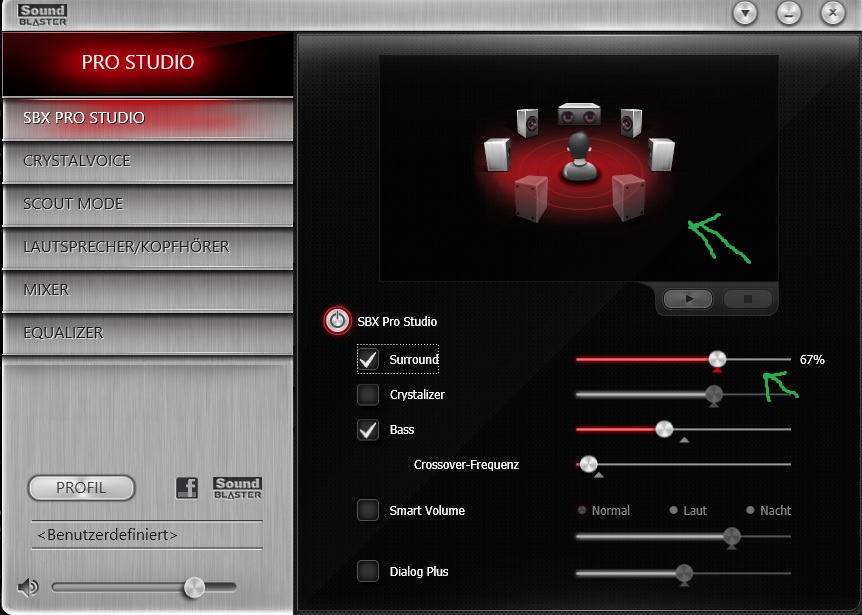 hab mir vor ein paar Wochen die Soundblaster Z gegönnt, bin auch soweit zufrieden. Nach anfänglichen Schwierigkeiten, was den Surroundsound betraf, habe ich nun mit einem allerdings kleineren Problem zu kämpfen. Das Problem ist, dass die Lautsprecherkonfiguration nach jedem Neustart auf 5.1 Surround zurückswitcht. Mit dieser Einstellung hab ich oftmals Soundaussetzer, mal auf der linken mal auf der rechten Headsethälfte. Mit der Umstellung auf Stereo ist das Problem soweit behoben, nur das Umstellen nach jedem Neustart ist lästig.