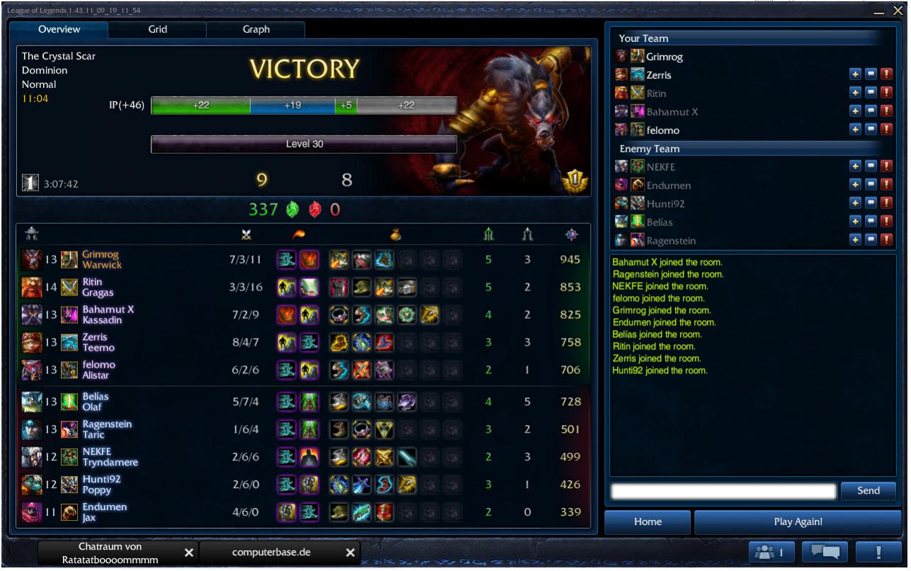 Mitte fiel schnell, auf einmal war mein Team da, wir haben das gegnerische Team zurückgedrengt besiegt, nach <11min war dann der Victory Screen auf dem Bildschirm und 10 Spieler haben verdutzt im Statsscreen miteinander rumgeblödelt was da gerade abgelaufen ist, weil erklären konnte sich das keiner.