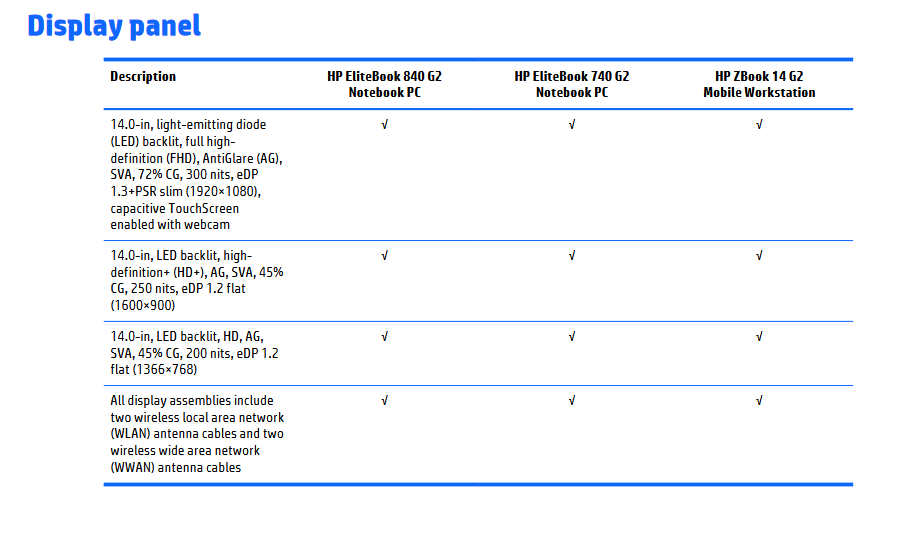 Nein, was aber durchaus sein kann, das du ggf. ein anderes Displaykabel benötigst. Zumindest hat HP bei den Nachfolgern stets andere Displaykabel... Wenn ich nen Cable-Kit für ein Model bekomme, sind da meist 6-8 unterschiedliche Displaykabel drin (Touch, nonTouch, FHD, UHD, 400nits, 1000nits etc). Wie das beim alten G2 realisiert wurde, weiss ich leider nicht, soweit gehen meine Unterlagen auch nicht und im Maintenance and Service Guide steht auch nichts zu den Displaykabeln. Das hier sind die unterschiedlichen Displays, welche es für dein Gerät gibt. Du kannst dabei auch direkt nach der Teilenummer suchen, dann bekommst du ein zu 100% kompatibles Display, sofern das Kabel kompatibel ist.