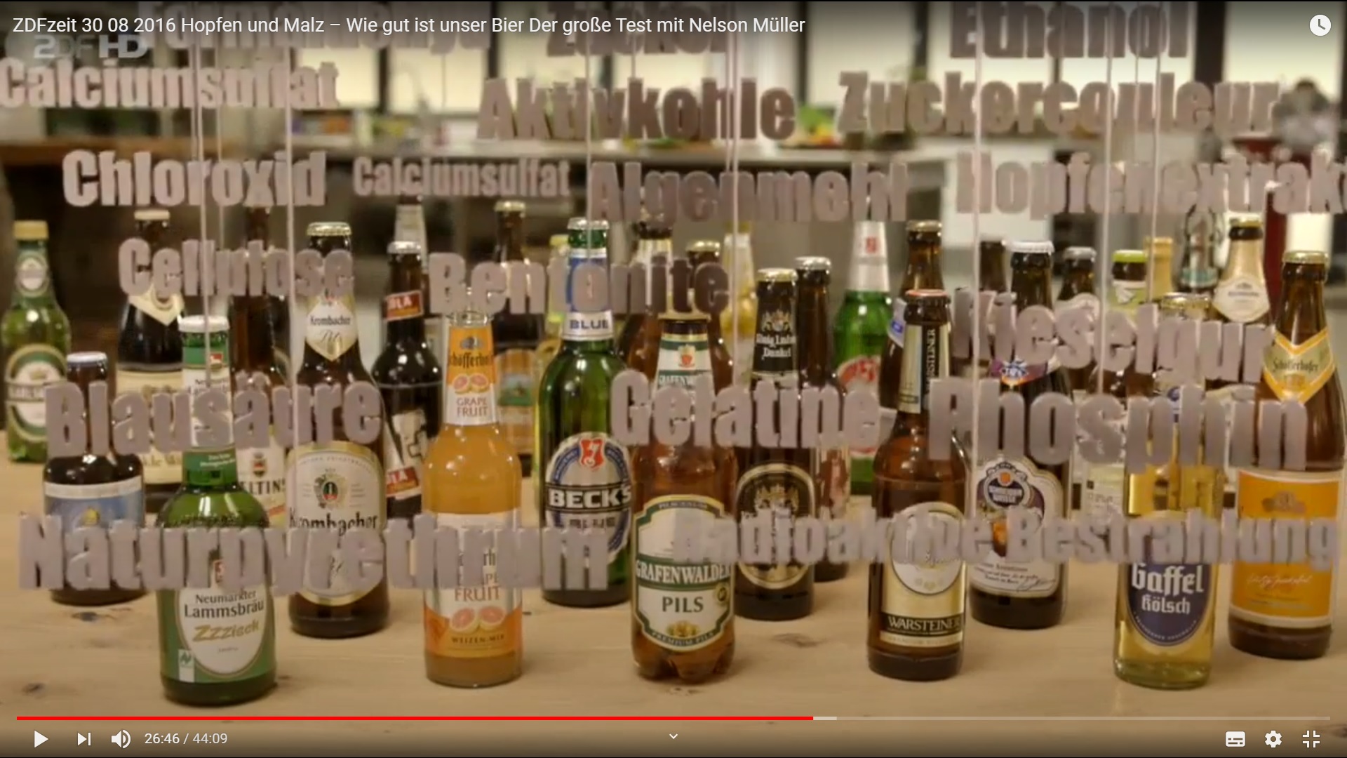 Oder die Sache mit dem Reinheitsgebot beim Bier, von wegen, es gibt ca. 60 Zusatzstoffe die beim Bier brauen verwendet werden dürfen, im Video ab 24:40:
