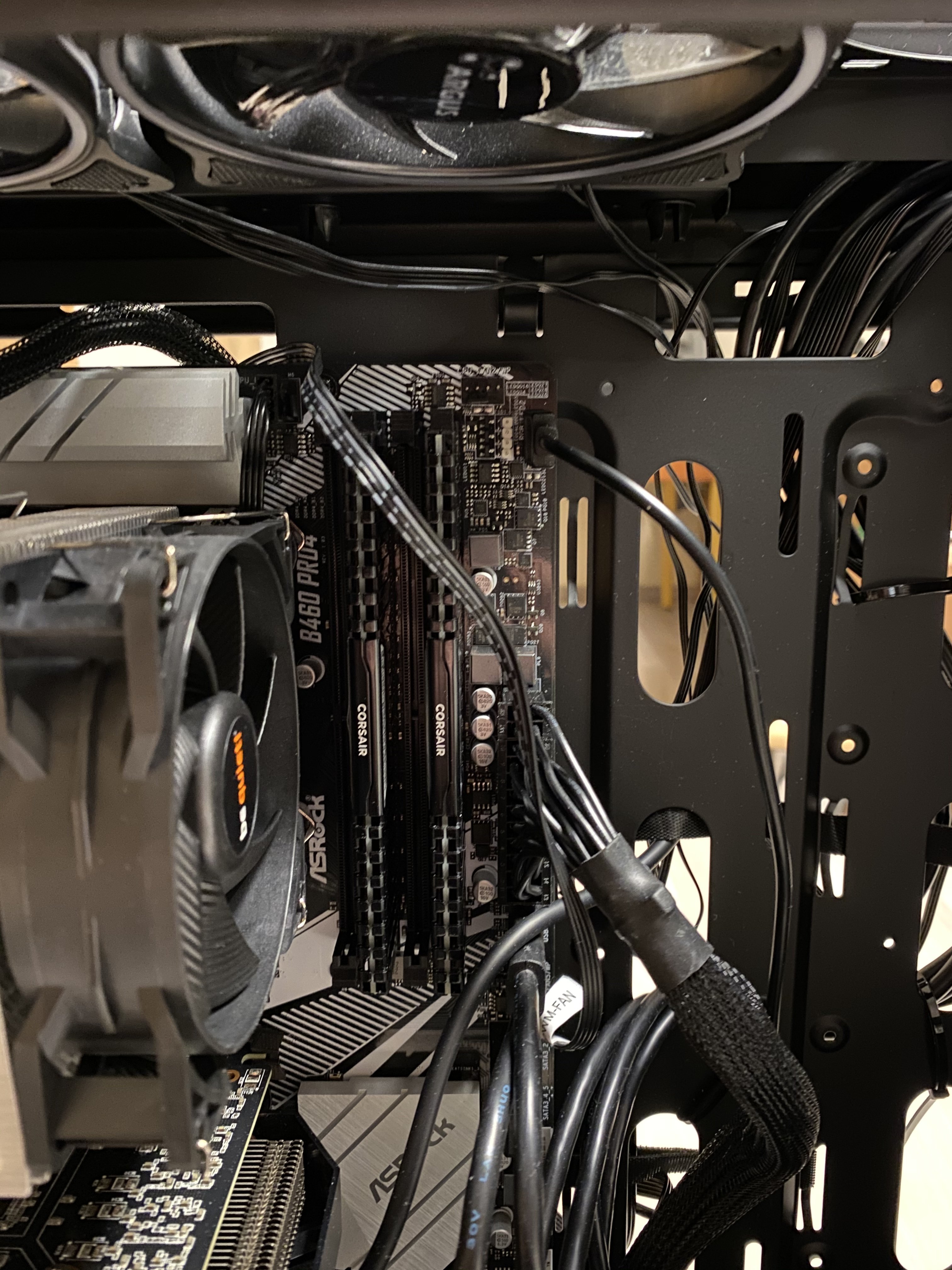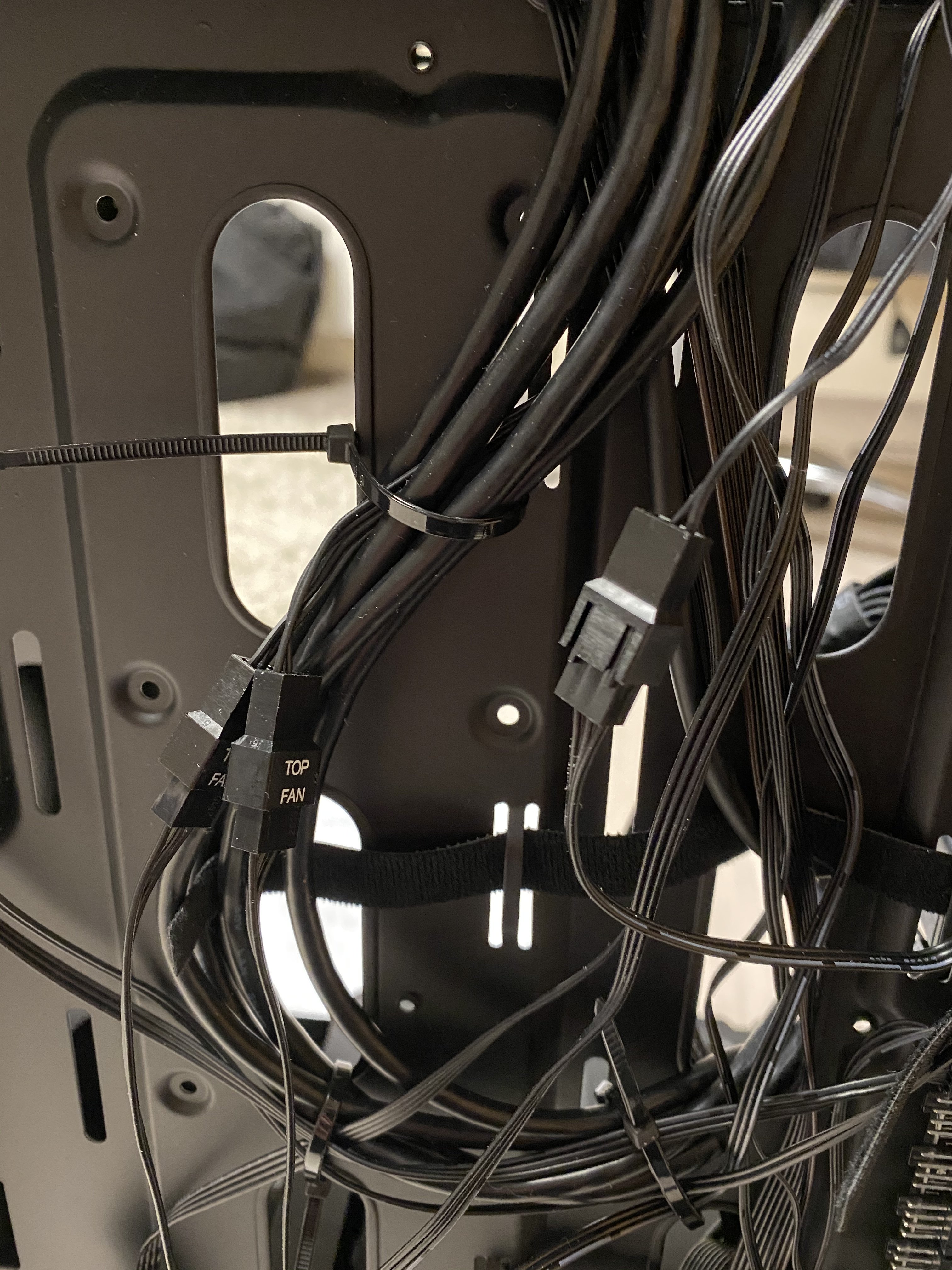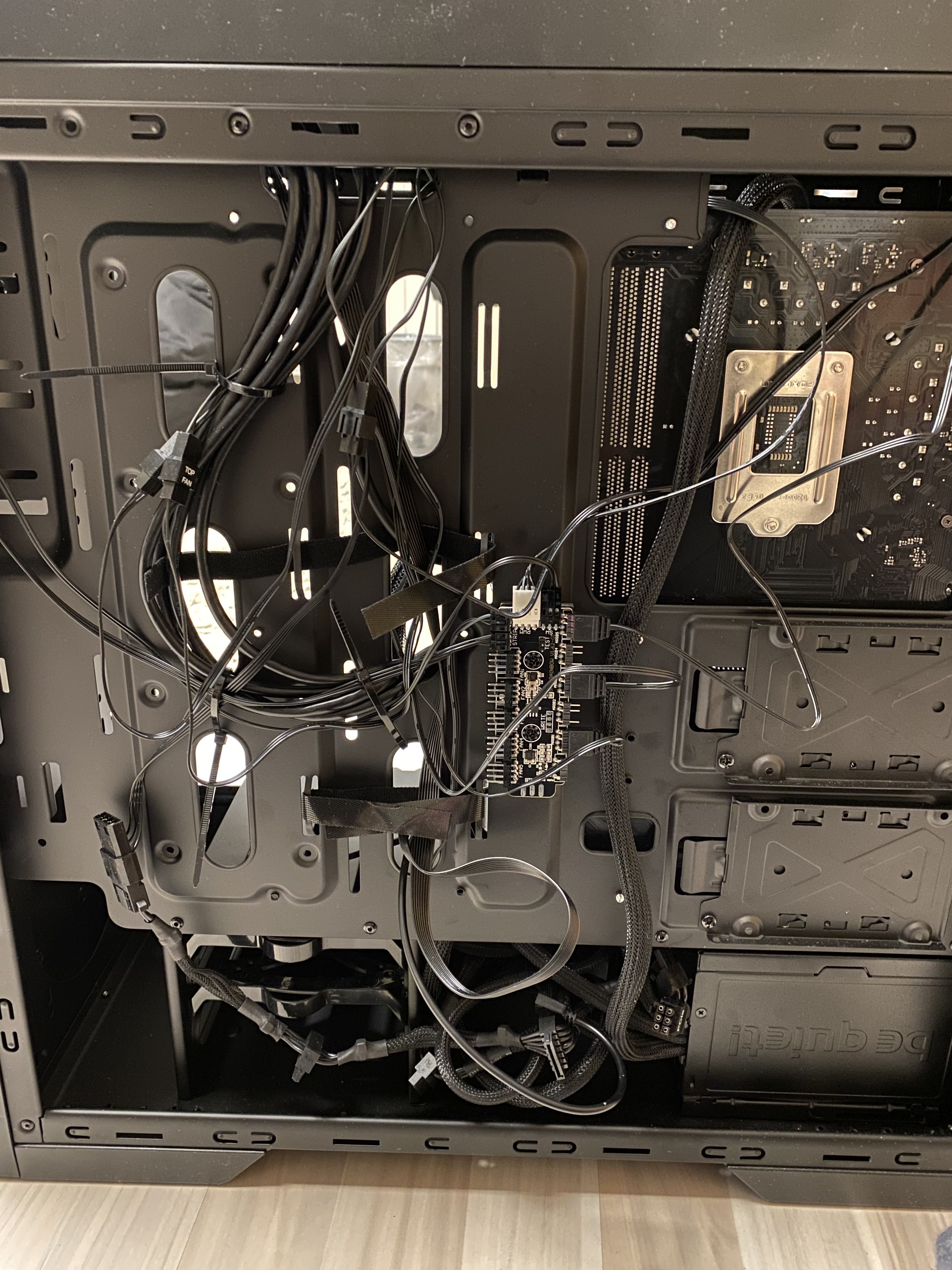 Die drei Lüfter von dem Gehäuse sind mit dem Frontpanel verbunden, dies war bereits beim entpacken des Gehäuse der Fall.