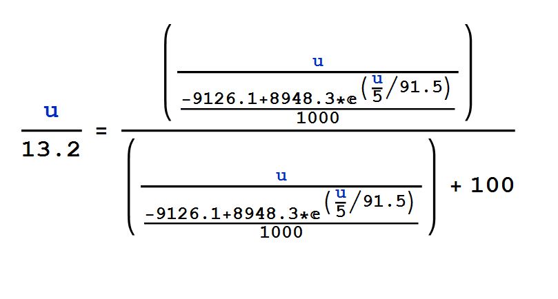 Lässt man nun den PC nach u aus (2) "auflösen" so erhält man die Spannung die an den 5 LEDs anliegt. Mein Programm spuckt hier 10.40V aus, was nun in der Tat ein Spannung pro LED von unter 2.1V bedeutet.