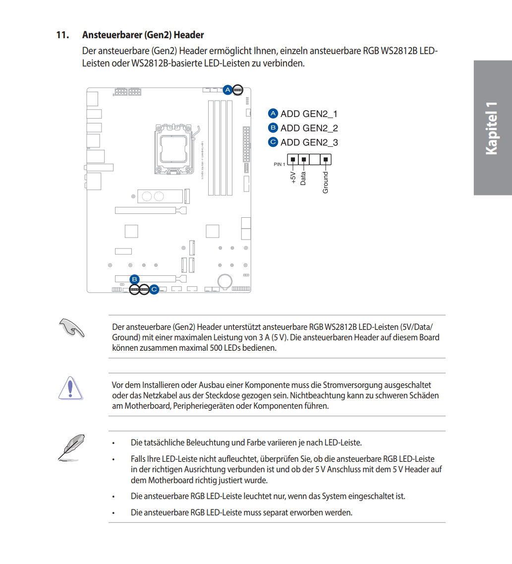 Ich habe gestern für meinen Kollegen den Rechner zusammen gebaut und habe in dem Lian Li O11 Evo 9x Asus TUF Gaming TF120 ARGB Lüfter verbaut. Diese mit dem mitgelieferten ARGB Controller angeschlossen also 3 Lüfter in den Controller und von Controller in die Anschlüsse vom Mainboard was ziemlich gut ist da ich 3 dieser Anschlüsse habe. Nun soweit alles wunderbar eingeschaltet Lüfter leuchten aber sie lassen sich leider nicht mit Asus Aura Sync steuern und ich weiß leider nicht warum.