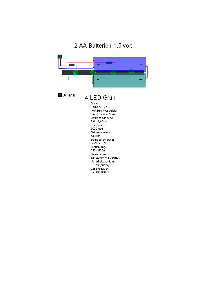 Da die LEDs eine Spannung von 3V benötigen, hängst du alle LEDs parallel zueinander.
