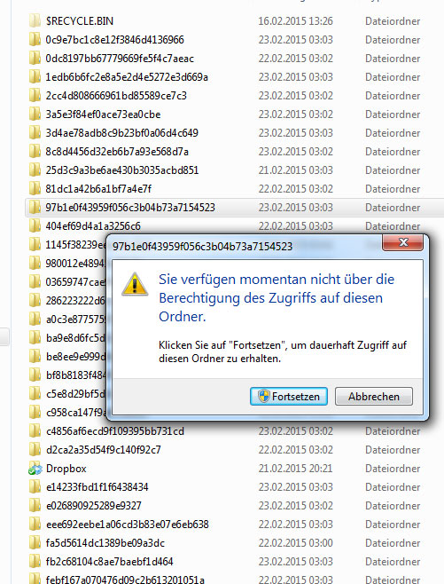 Nun hab ich festgestellt das bisher jeden Morgen neue Ordner mit Buchstaben-Zahlen-Kombis auftauchen, (nur auf Festplatte E mit meinen Daten) die Nachts um 3 erstellt wurden und leer sind. Manchmal 3 manchmal 1 Ordner (e8dd93993234ba4685)