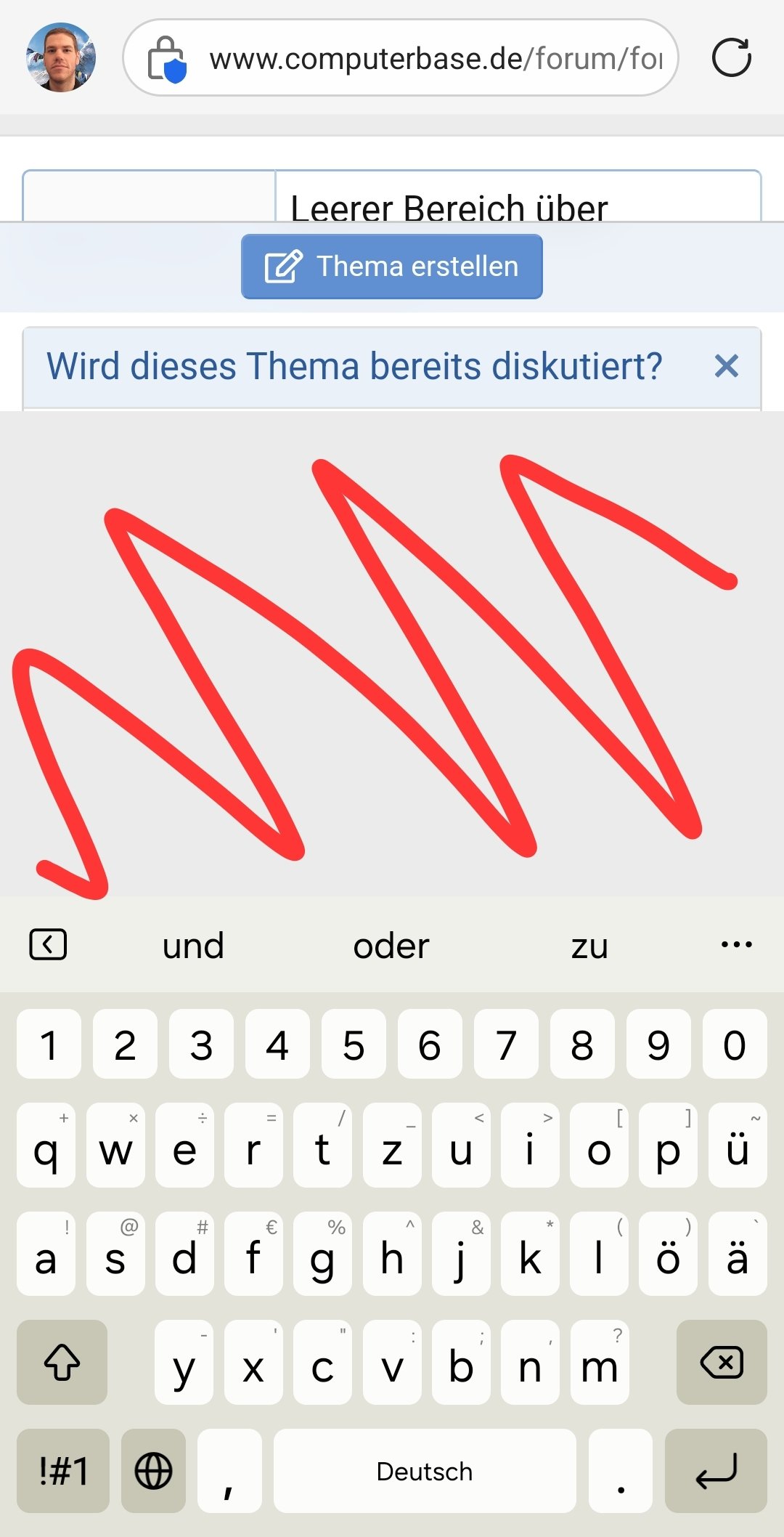 Ich habe seit Kurzem das Problem in Edge auf Android, dass beim Tippen auf ein Eingabefeld sich zwar die Tastatur öffnet, darüber aber ein mal mehr mal weniger großer freier Bereich angezeigt wird.