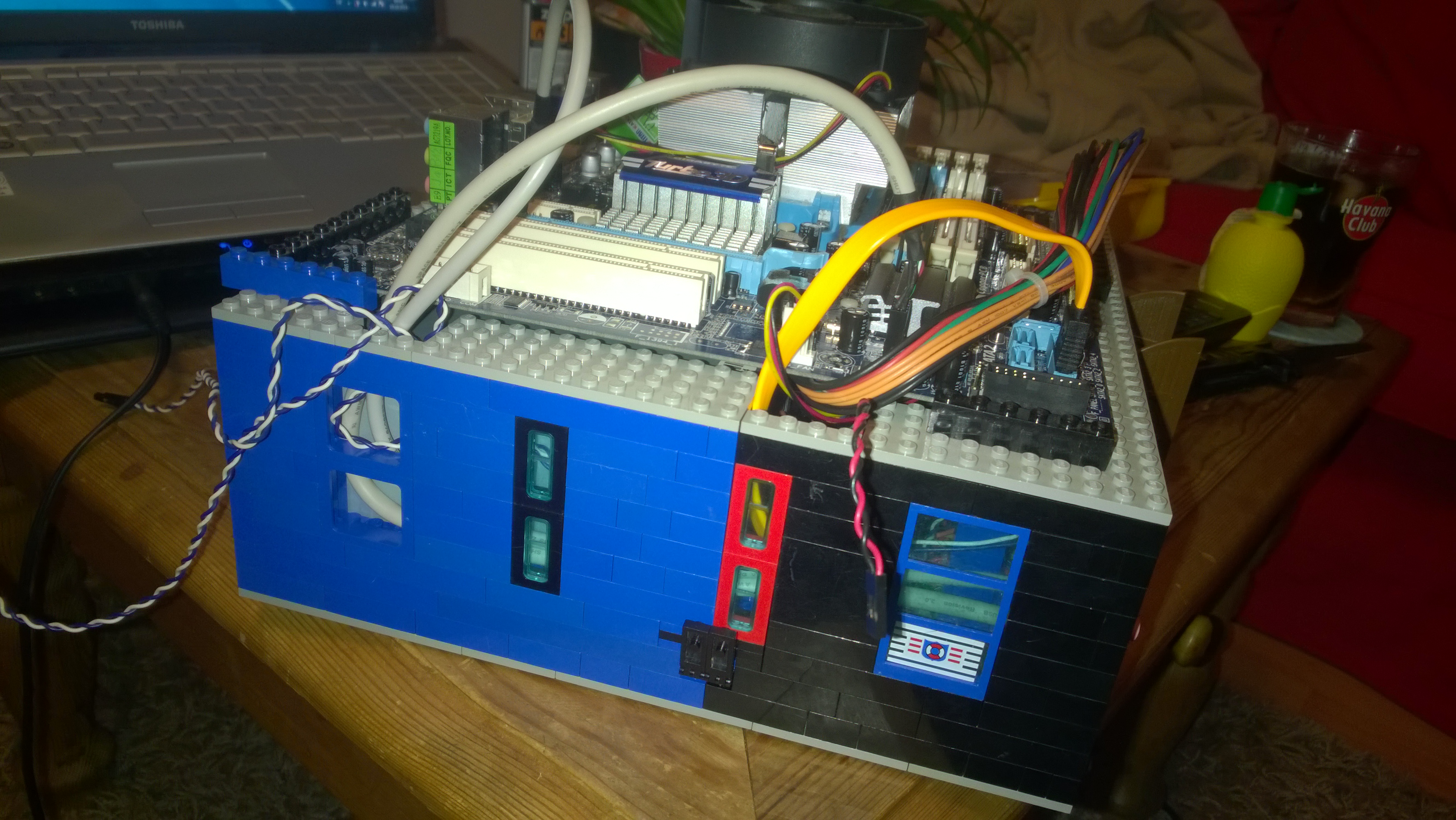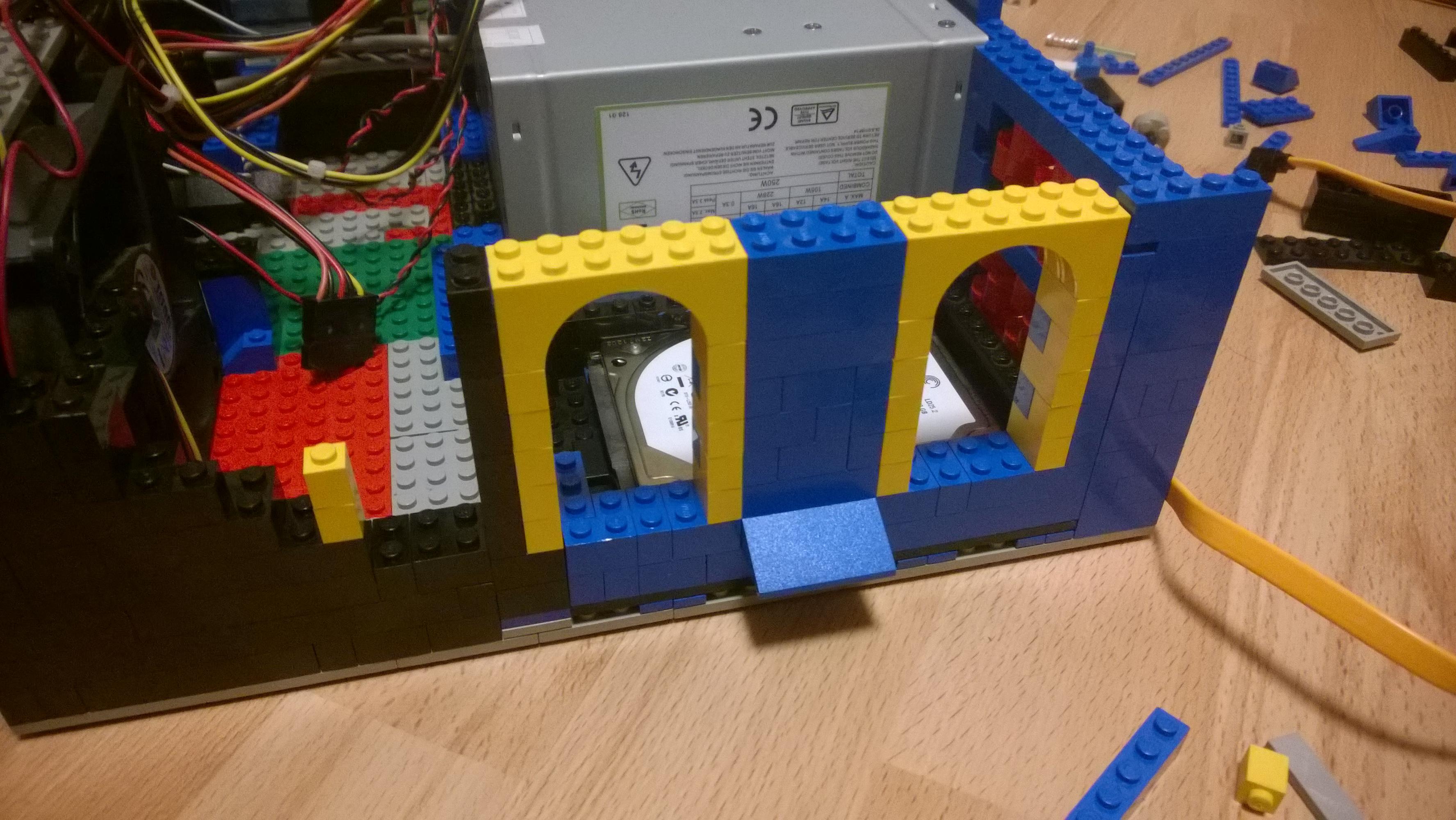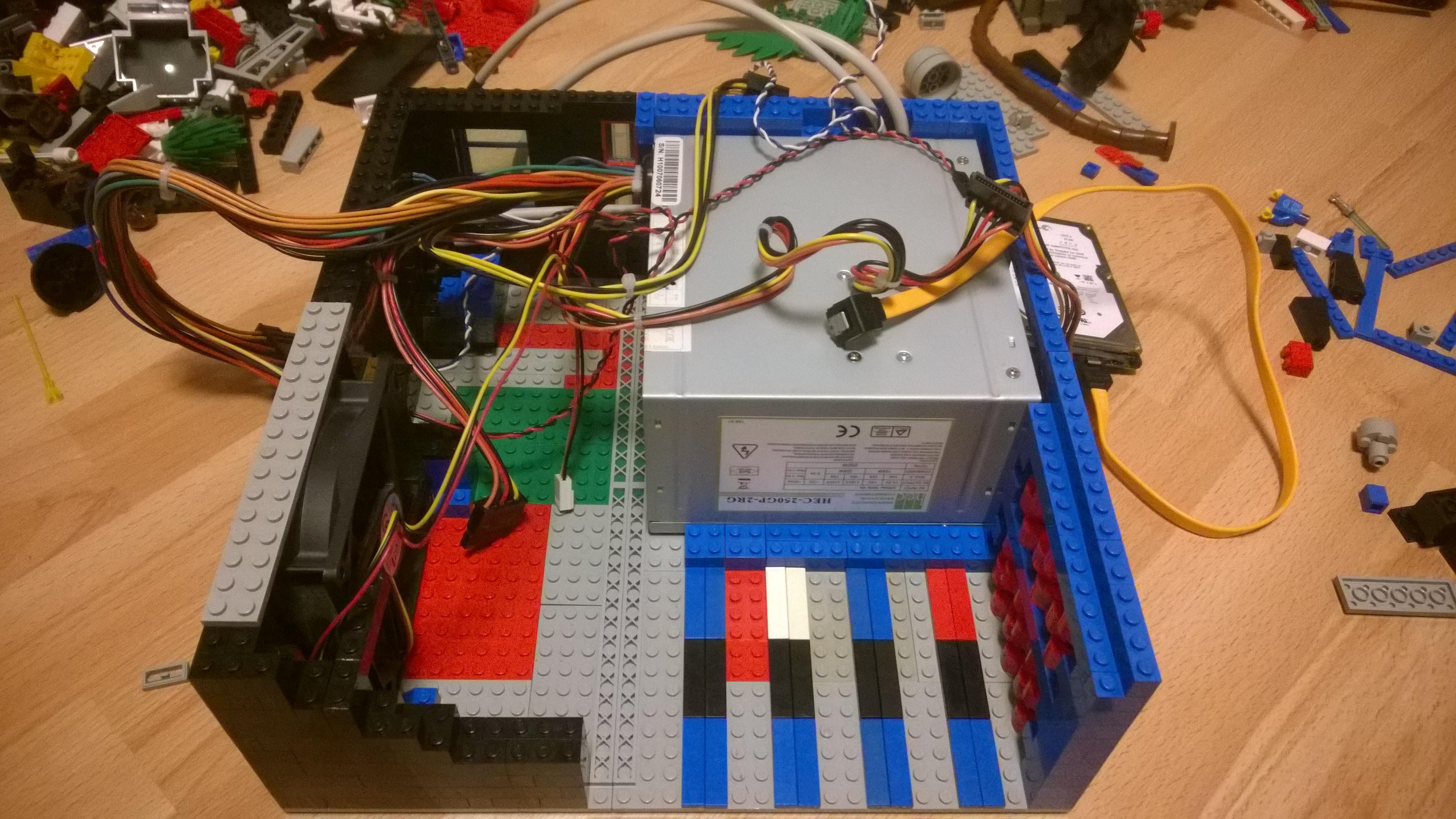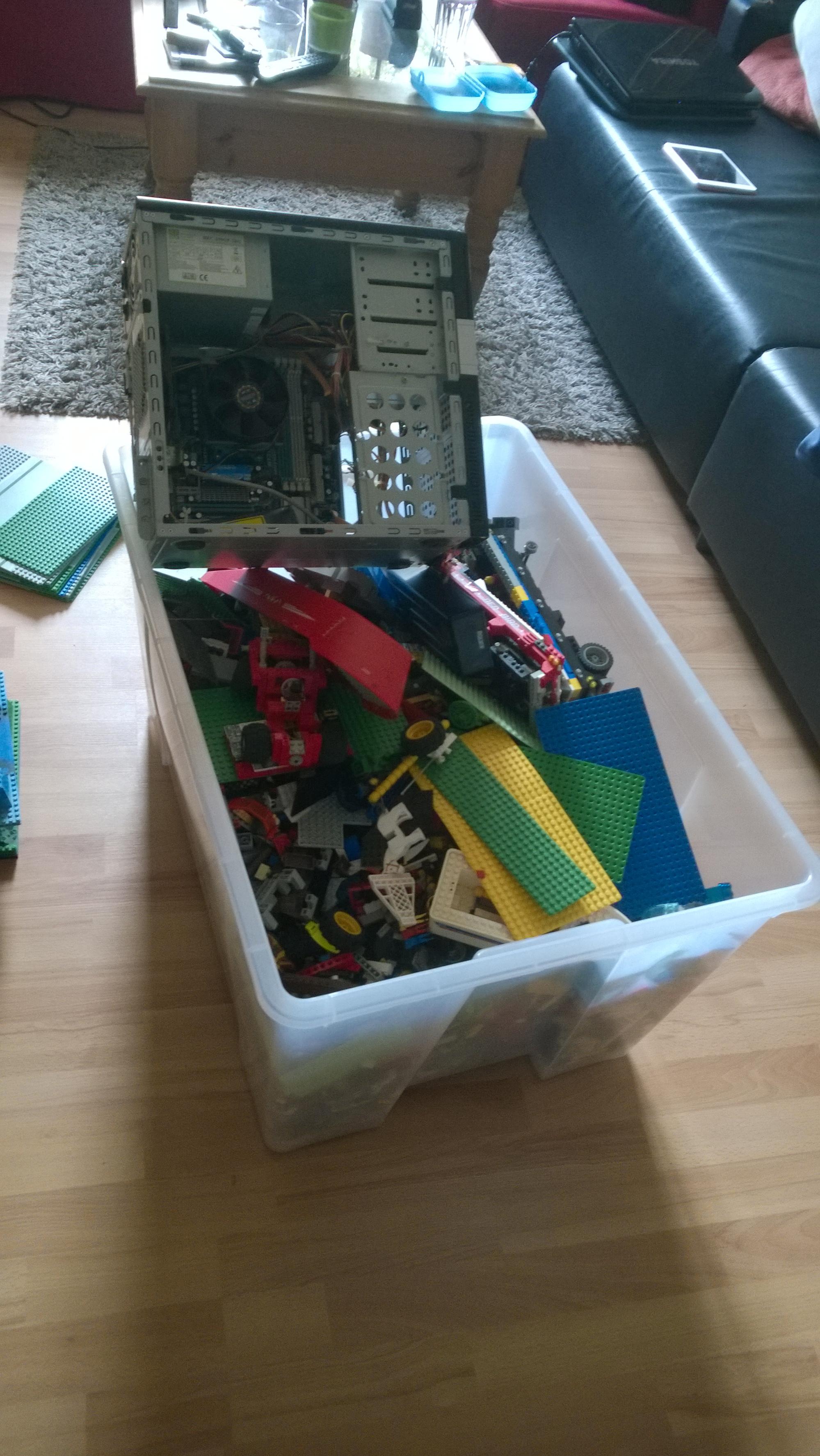 Ich habe mich im Internet umgeschaut nach PC Modding in allen Variationen. Des öfteren bin ich über Lego-Gehäuse gestoßen und erinnerte mich daran, dass ich selbst eine ziemlich ansehliche Kiste voll davon im Keller stehen hatte. Also nichts wie Treppen runter, Kiste entstaubt, von Unrat befreit und Treppen wieder hoch.