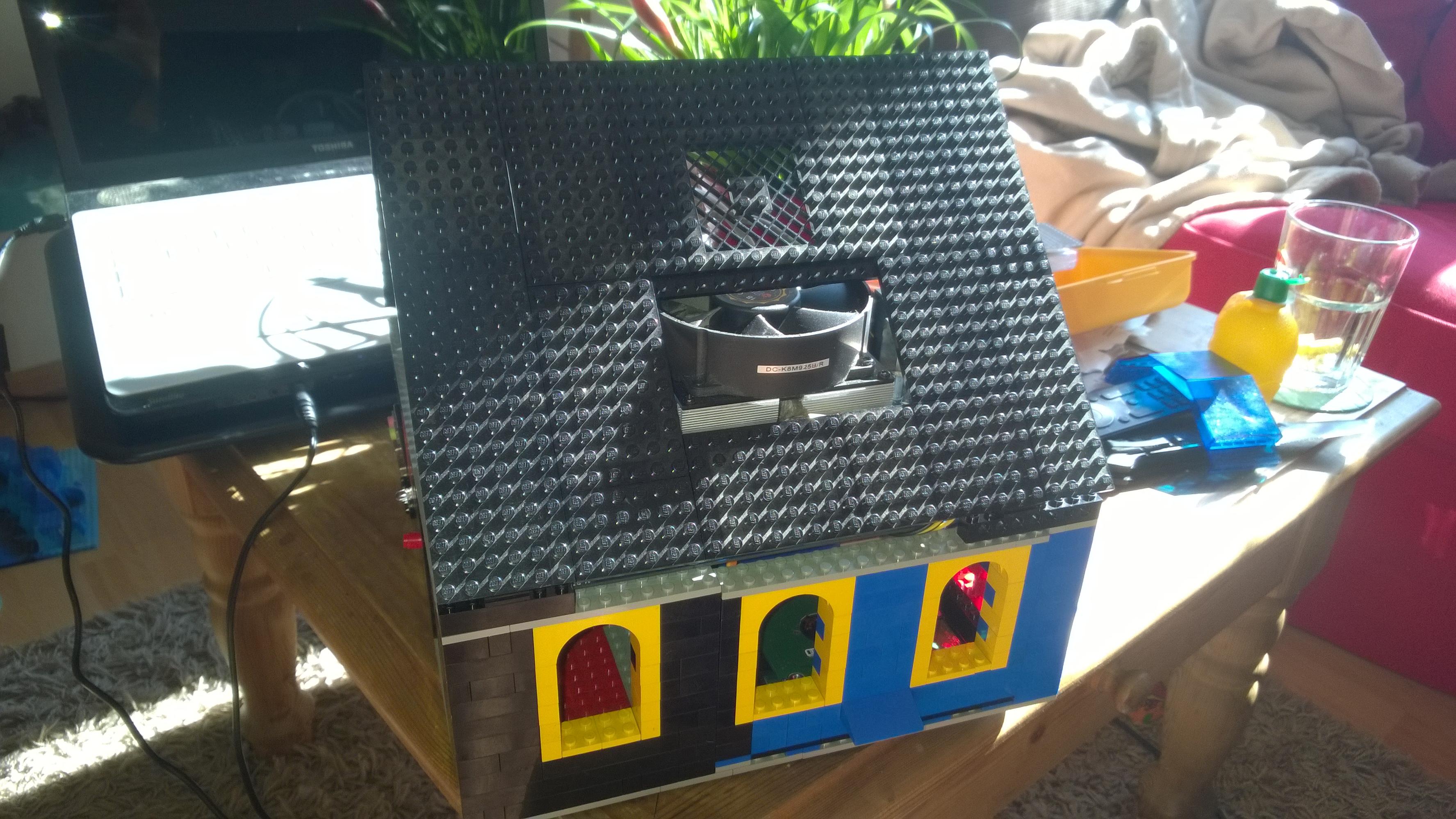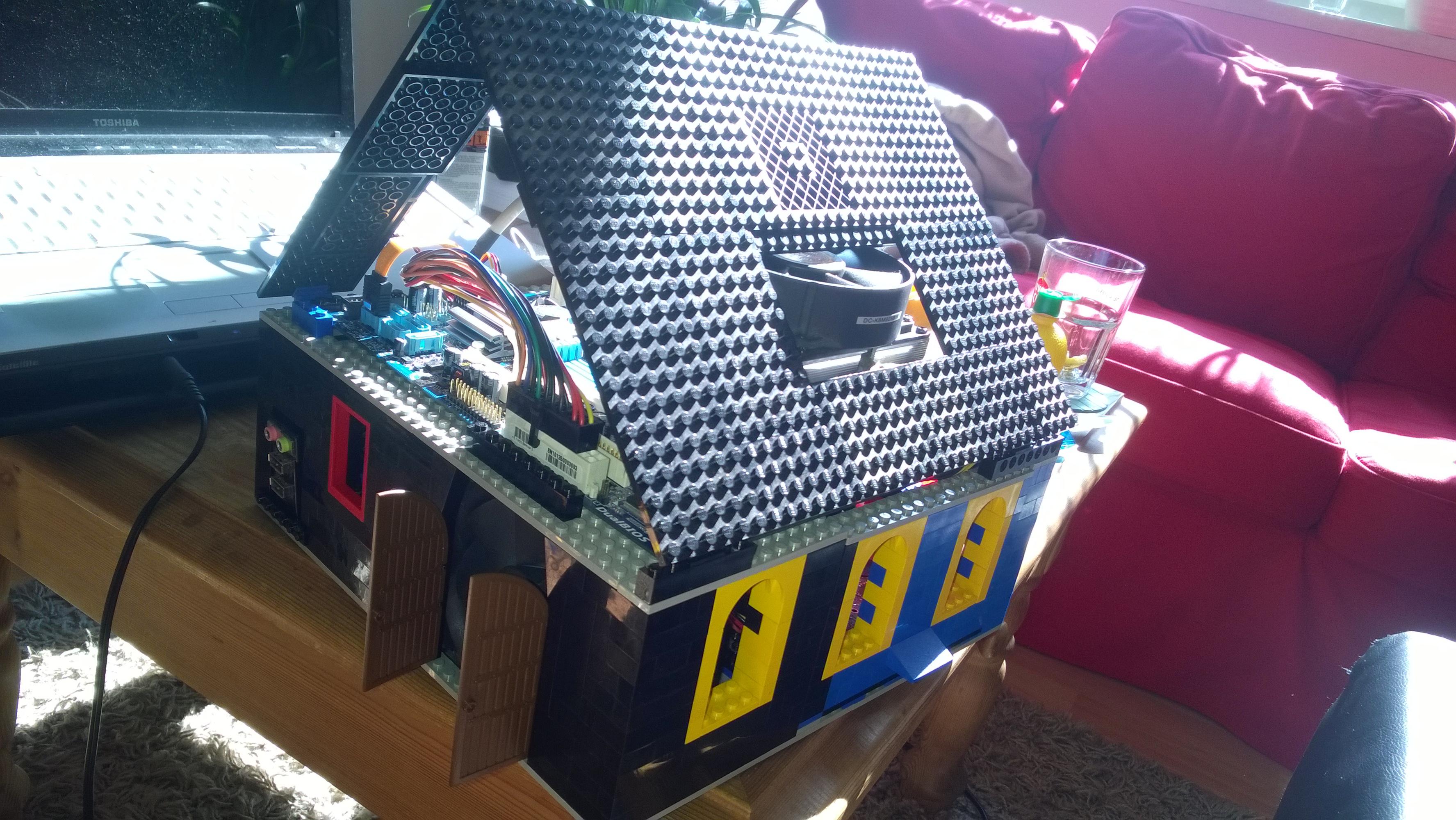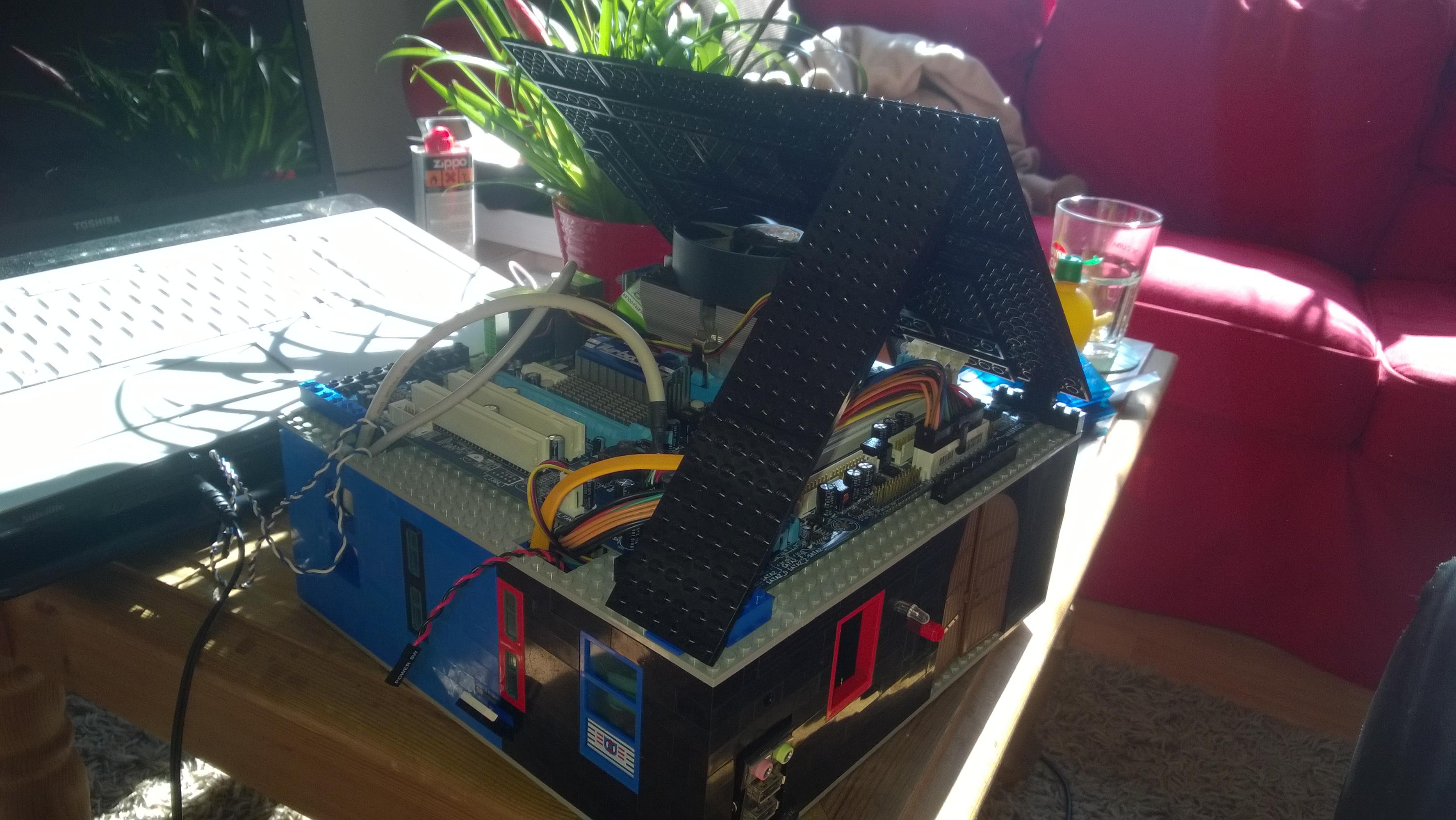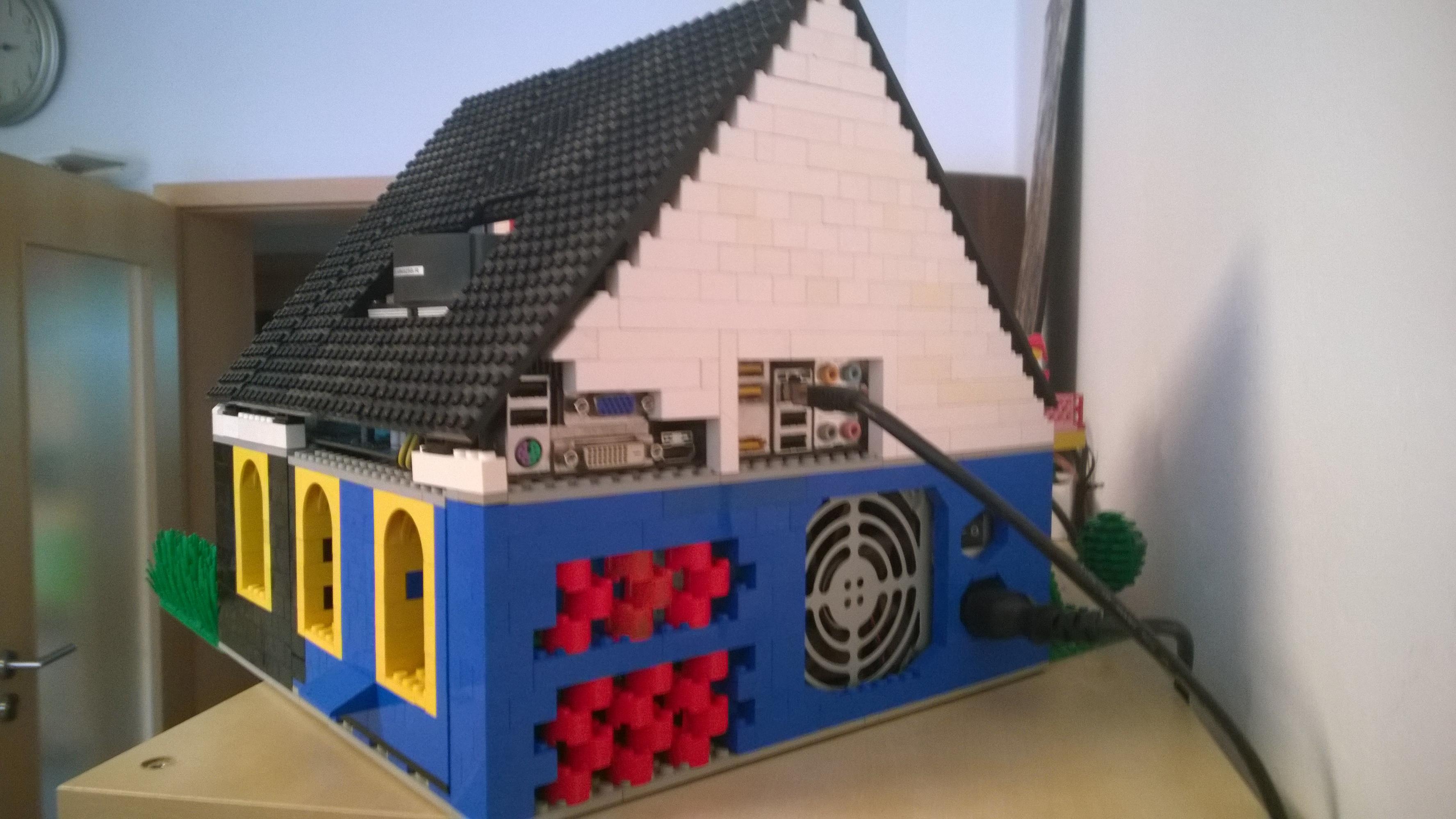 Nachdem ich den Wohnzimmerboden großflächig mit Legosteinen bedeckt und mit dem Bau eines "klassischen Towers" angefangen hatte, kam Widerspruch seitens der Beobachterin vom Sofa: "Ich will aber keinen langweiligen PC-Tower aus Lego. Ich will ein Haus!"