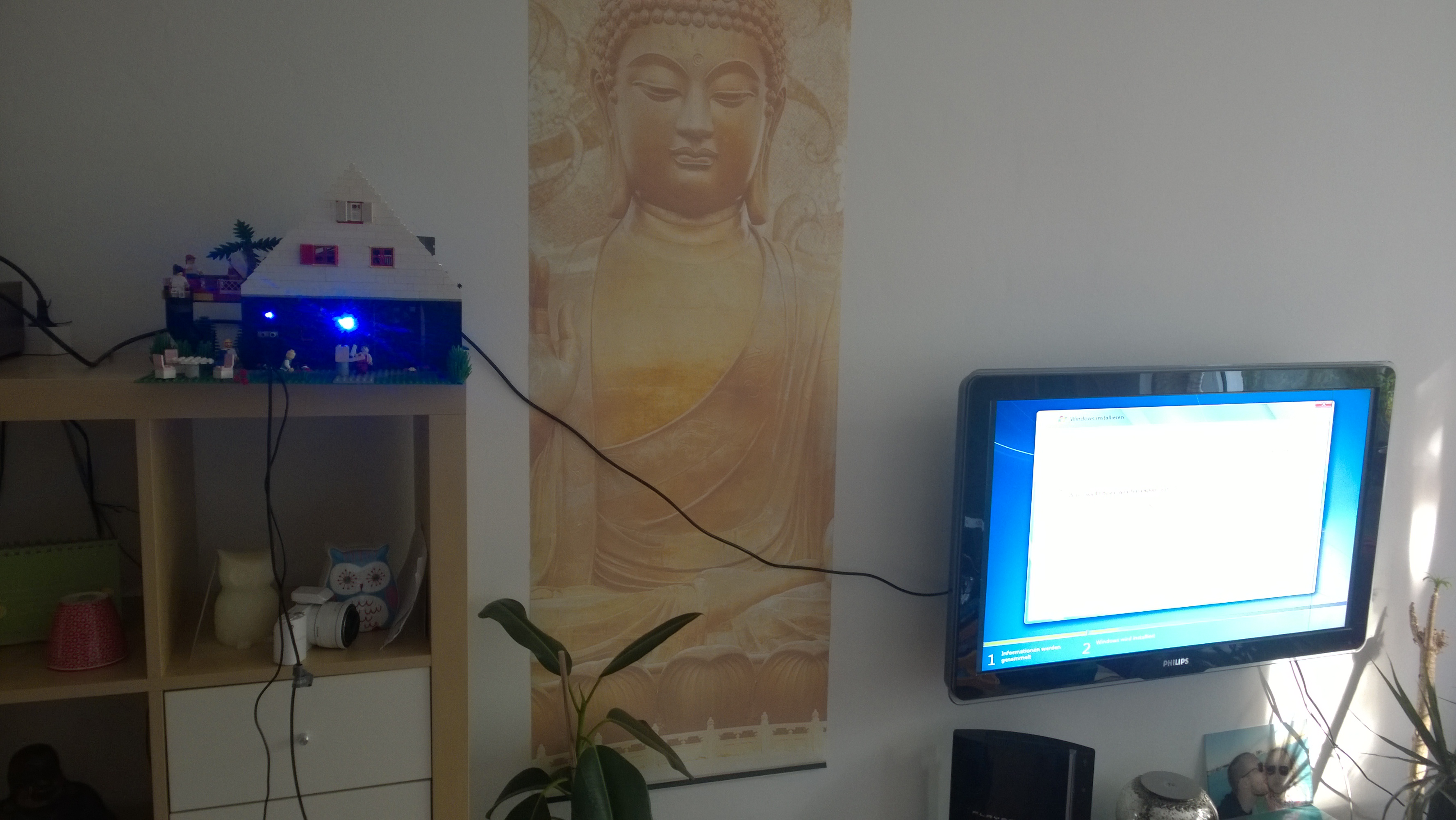Und so war das Projekt dann endlich fertig! Noch auf die alte PS3 Festplatte Win7 draufgeknallt, dem Modell einen schönen Platz im Wohnizmmer zugeteilt, zufrieden zurückgelehnt und das Meisterwerk begutachtet
