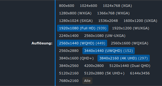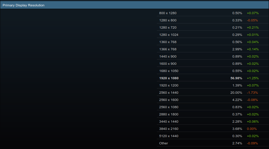 Kurzer Screenshot der aktuellen Steam Survey: