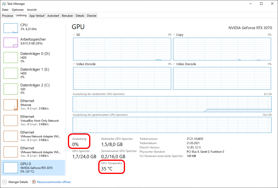 - Grafikkarte: ASUS RTX 3070 TUF Gaming OC