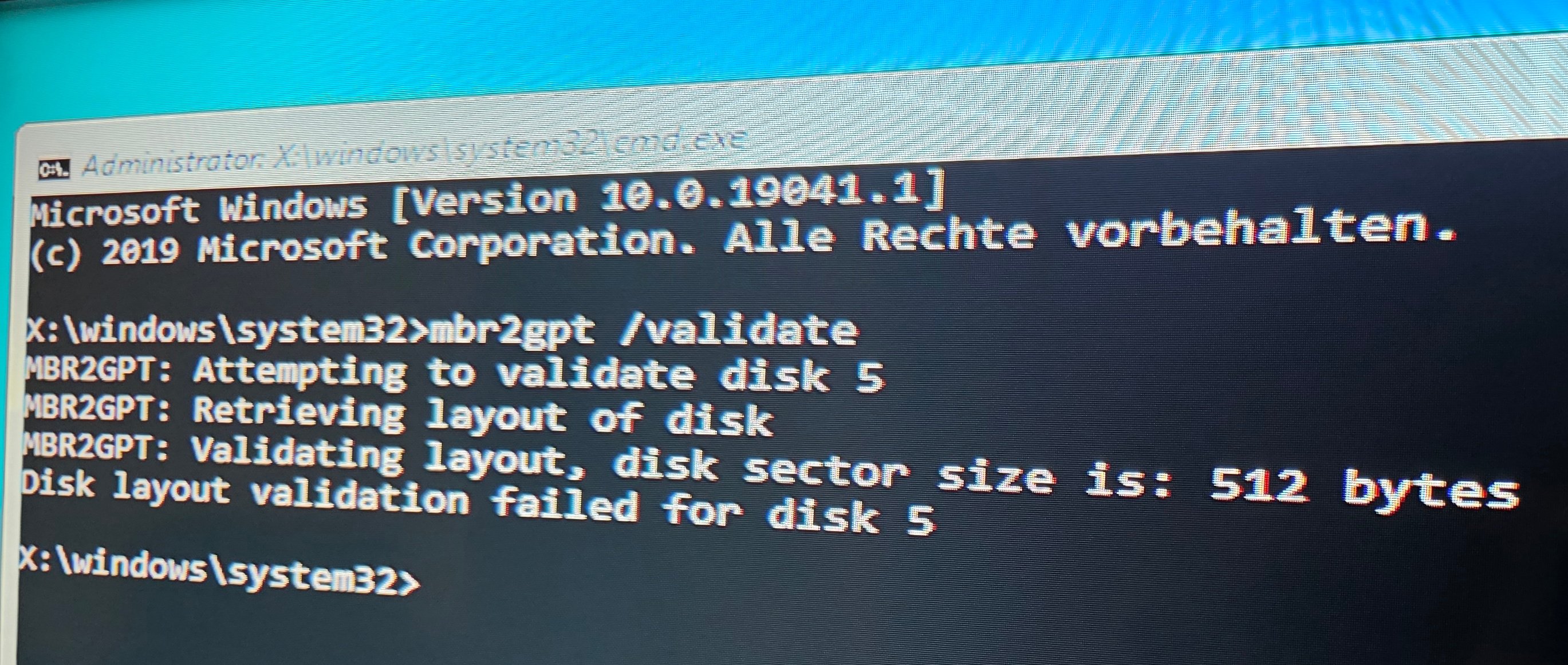 seit 2 tagen versuche ich, das mbr auf gpt ohne datenverlust umzuwandeln, aber es kommt immer eine fehlermeldung. ich habe die anleitung von deskmodder genau befolgt und mehrfach versucht, aber es klappt nicht. bei dieser anleitung mit eingabeaufforderung kommt immer die dämliche meldung mit 512 bytes und damit schlägt bereits die validierung fehl.