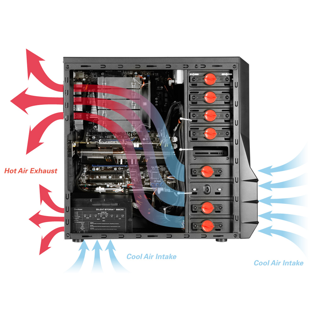 Dein Kühlkonzept sollte im Vaya ca. so aussehen (Bild von der Sharkoon-HP):