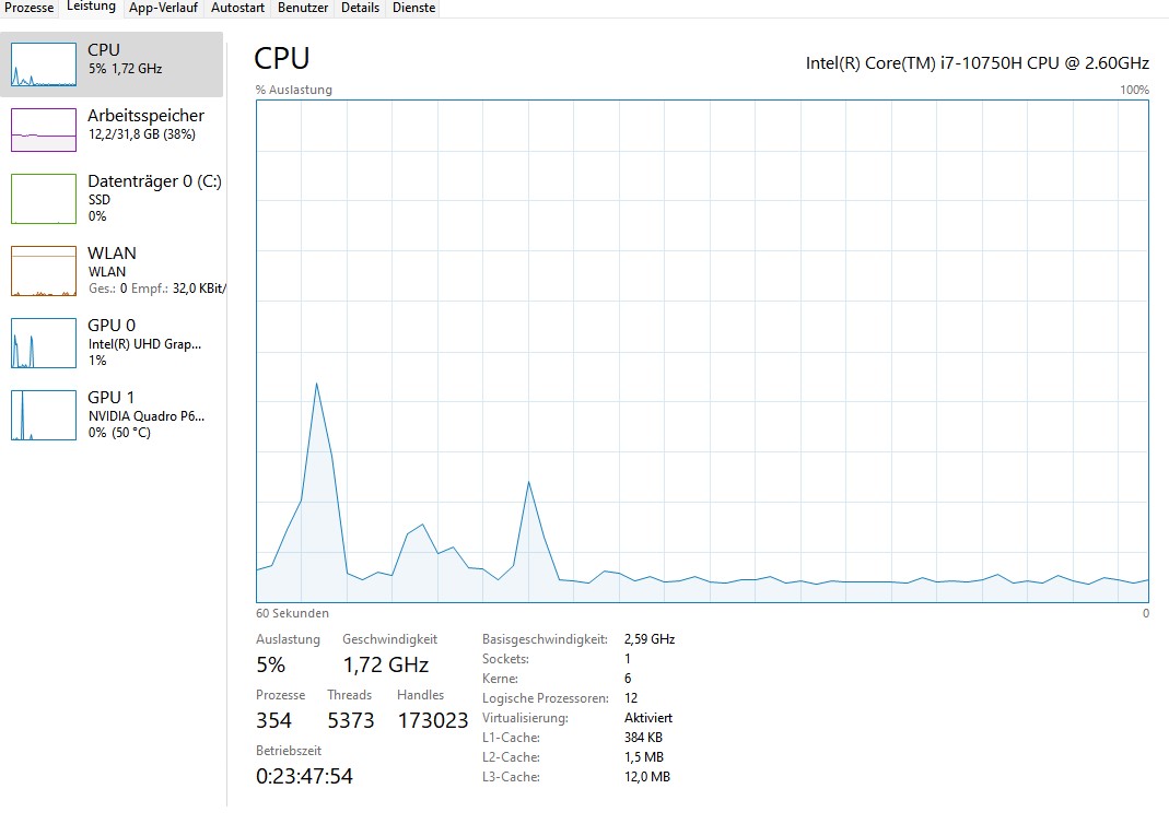 Aktuell nutze ich ein Lenovo Thinkpad P15V G1 mit einem i7-10750H mit 32 GB RAM.