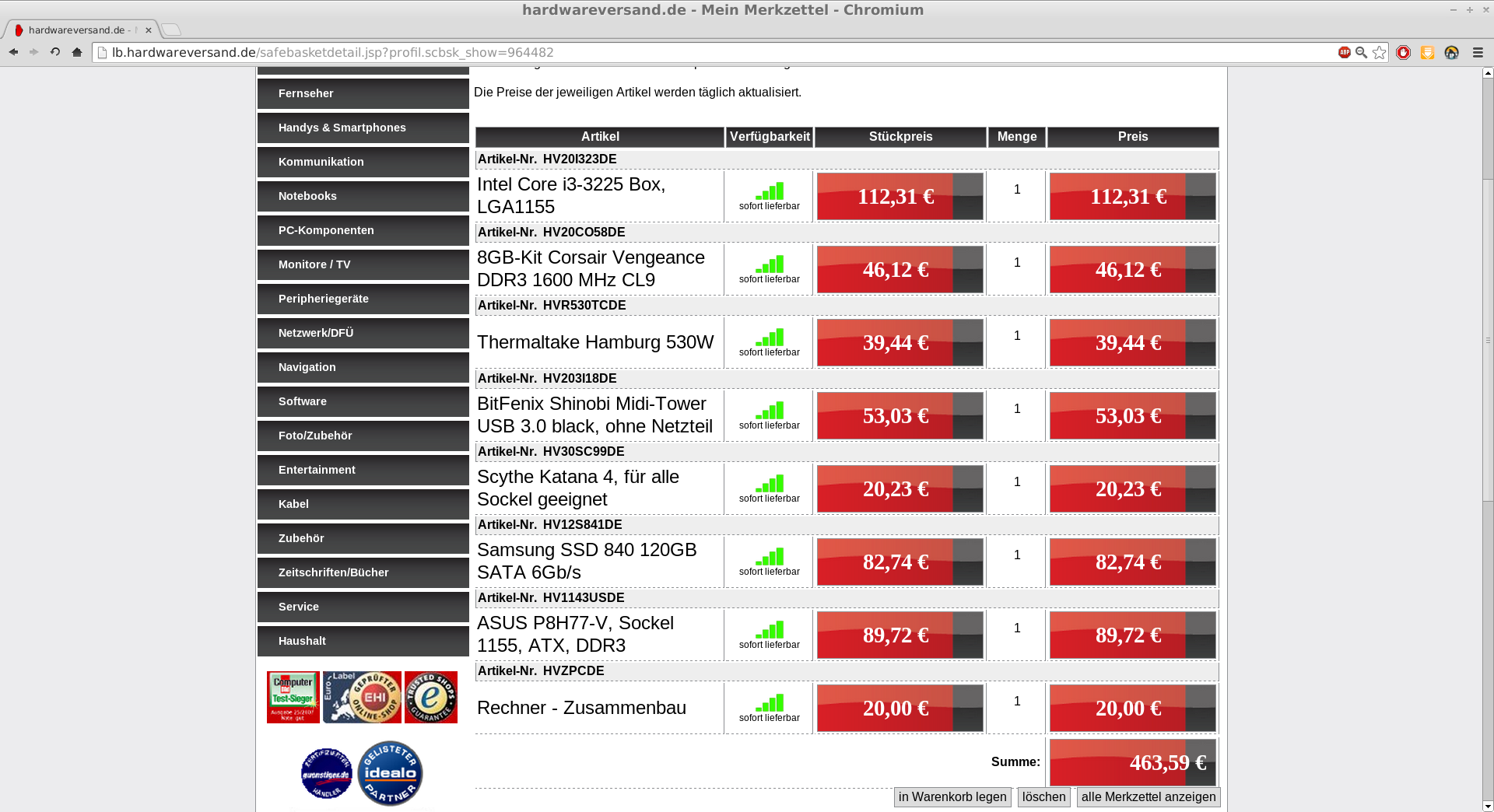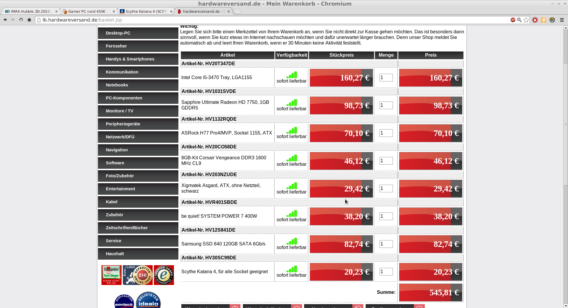 Ich stelle mir gerade einen möglichst leisen PC zusammen, der hauptsächlich für das wiedergeben von Filmen in 1080p, entpacken, verschieben von großen Dateien, Flash streams und simultanes browsen mit vielen Tab verwendet werden soll. Als einziges Spiel will ich Starcraft 2 Multiplayer spielen, hier muss auch nicht alles auf high eingestellt sein. Als Betriebssystem wird wohl die meiste Zeit eine Linux Distribution verwendet.